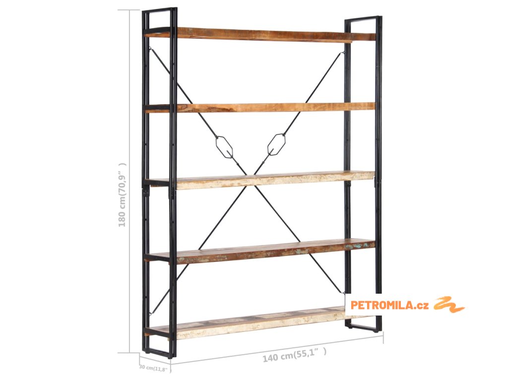 Knihovna s 5 policemi 140x30x180 cm masivní recyklované dřevo