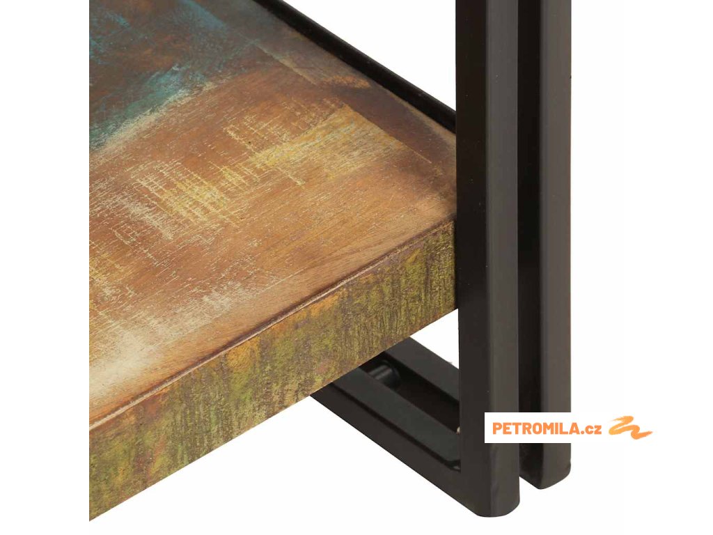 - Materiál: masivní recyklované dřevo s vícebarevnou povrchovou úpravou, práškově lakovaná ocel