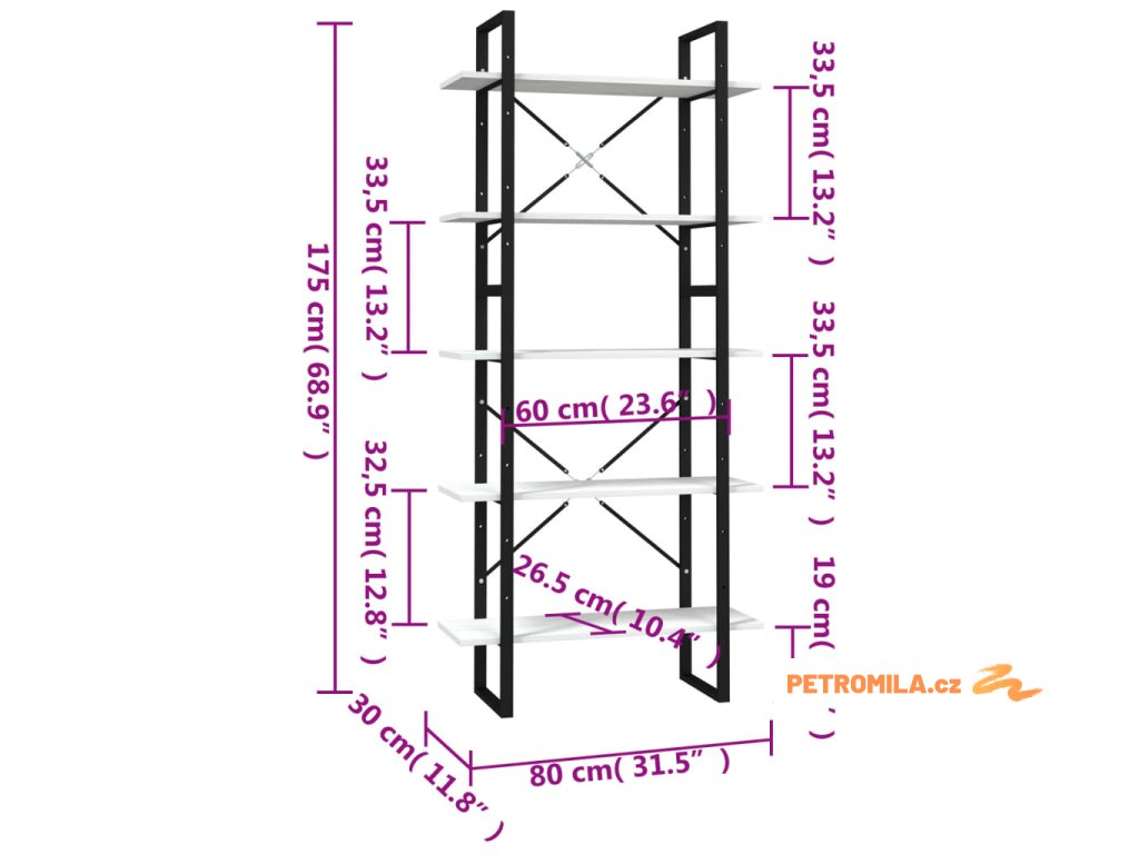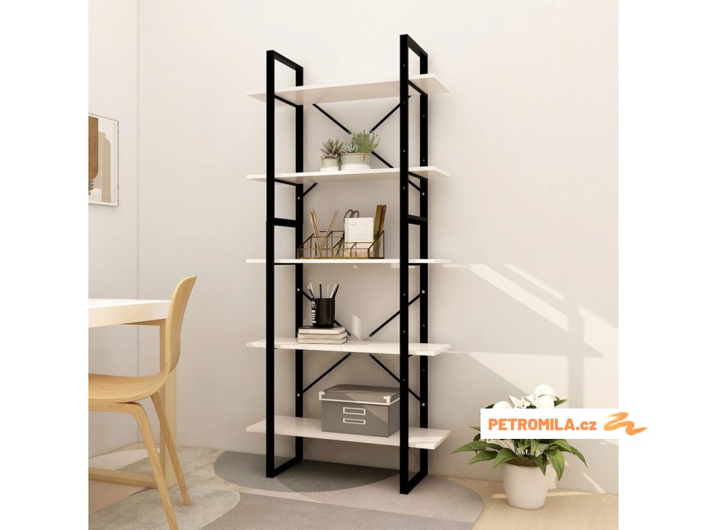 Knihovna s 5 policemi bílá 80 x 30 x 175 cm borové dřevo