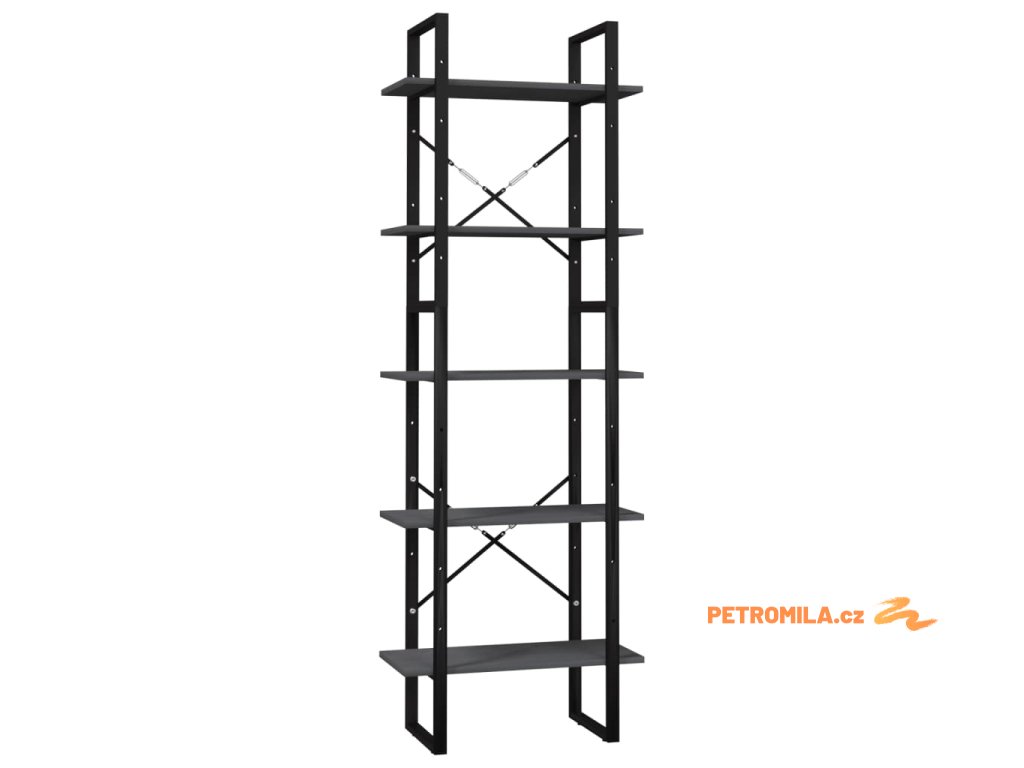 Knihovna s 5 policemi šedá 60 x 30 x 175 cm borové dřevo