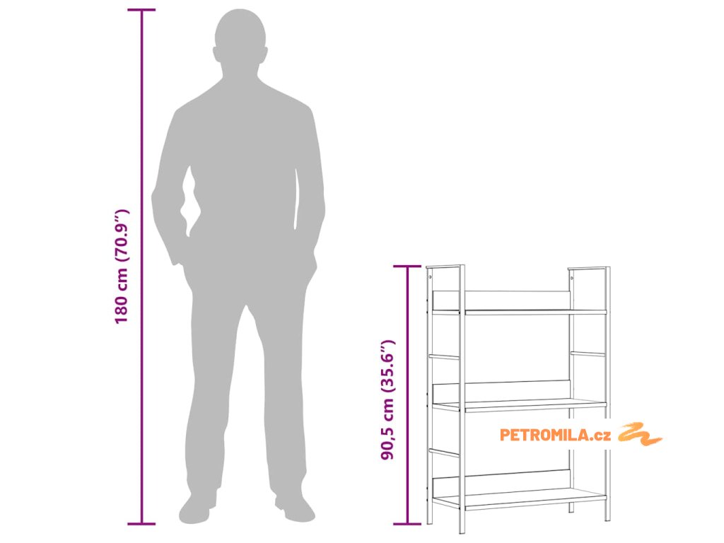 Regál je vyrobený z kompozitního dřeva, takže ho snadno očistíte navlhčeným hadříkem. Robustní ocelová konstrukce nepodléhá rzi a působí industriálním dojmem. Celá knihovna má kompaktní design, který vám umožní maximálně využít omezený prostor. Tři police nabízí spoustu místa, kde si můžete uložit a vystavit svou sbírku knih, květiny, CD, DVD a nejrůznější dekorativní předměty.
