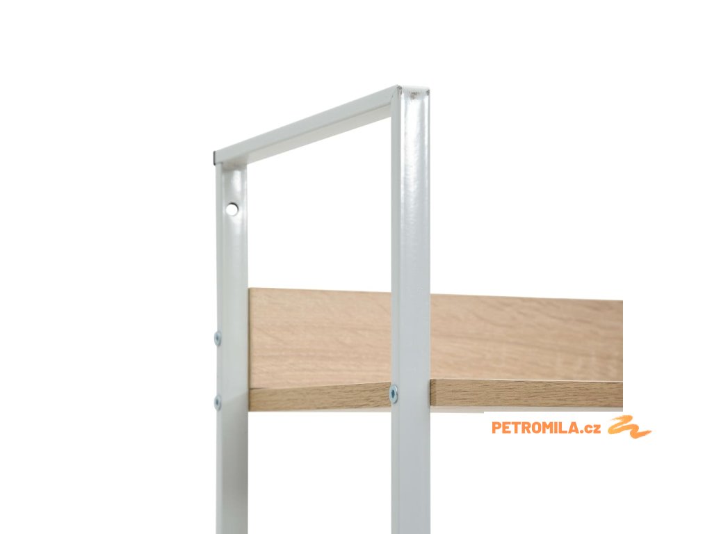Regál je vyrobený z kompozitního dřeva, takže ho snadno očistíte navlhčeným hadříkem. Robustní ocelová konstrukce nepodléhá rzi a působí industriálním dojmem. Celá knihovna má kompaktní design, který vám umožní maximálně využít omezený prostor. Tři police nabízí spoustu místa, kde si můžete uložit a vystavit svou sbírku knih, květiny, CD, DVD a nejrůznější dekorativní předměty.
