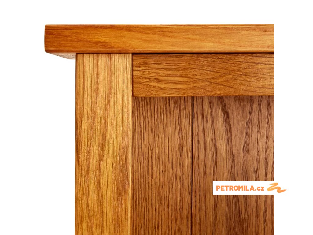 - Materiál: masivní dubové dřevo s přírodní povrchovou úpravou, MDF