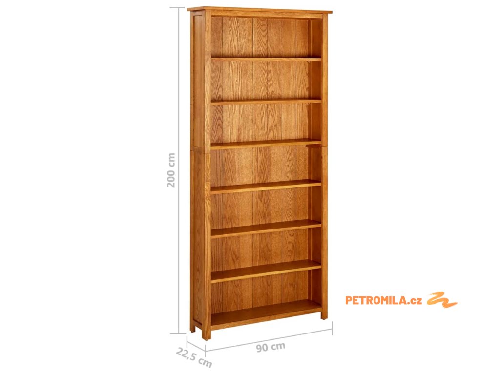Knihovna se 7 policemi 90 x 22,5 x 200 cm masivní dubové dřevo