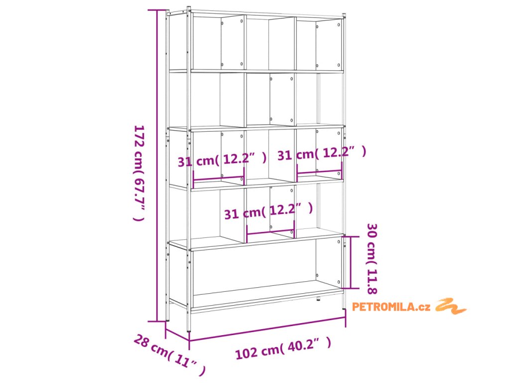 Knihovna šedá sonoma 102 x 28 x 172 cm kompozitní dřevo