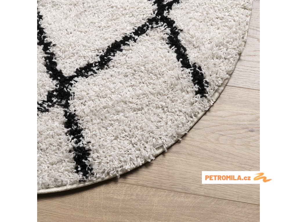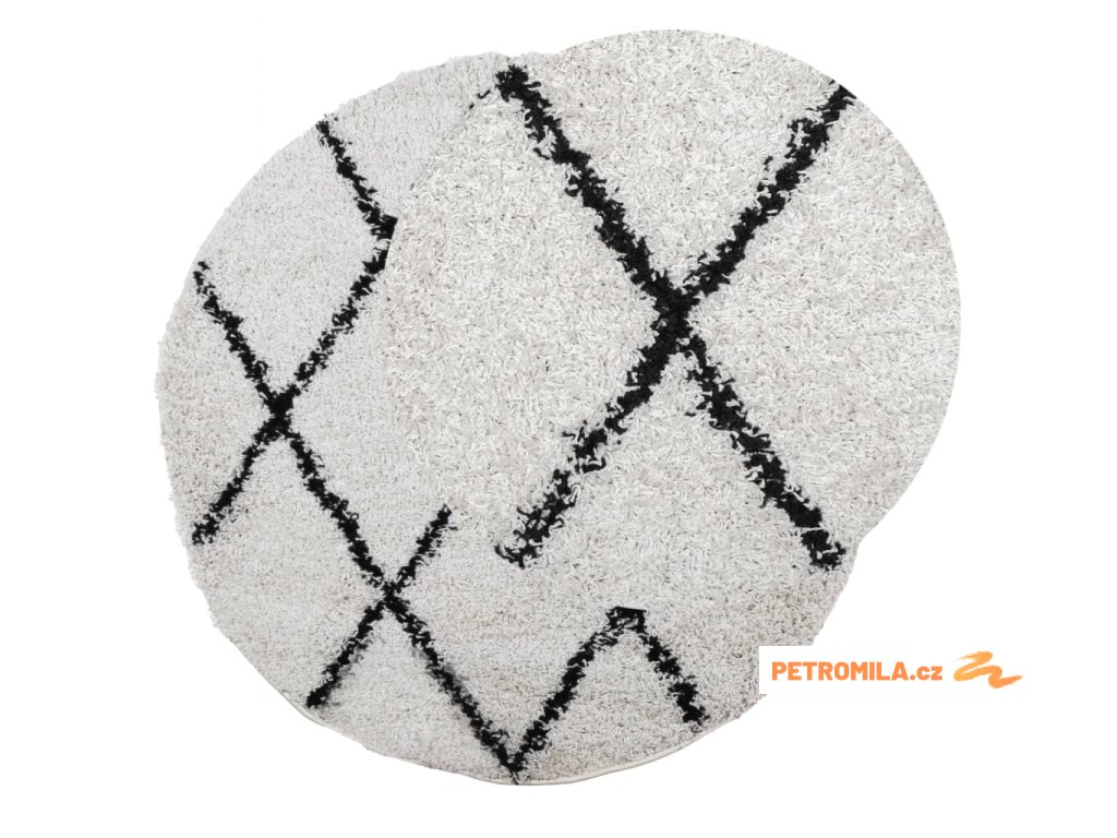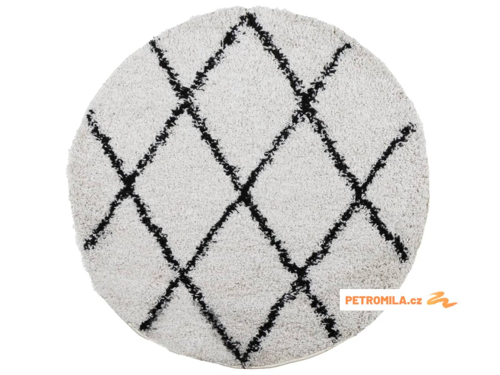 Koberec PAMPLONA s vysokým vlasem krémový a černý Ø 240 cm