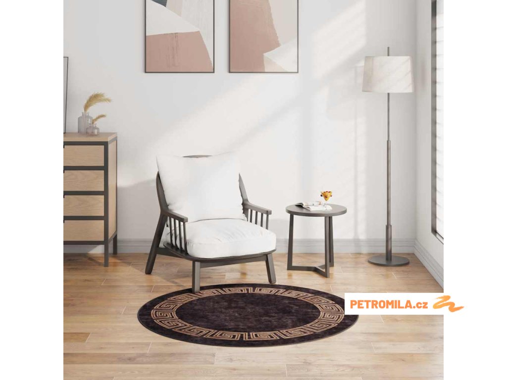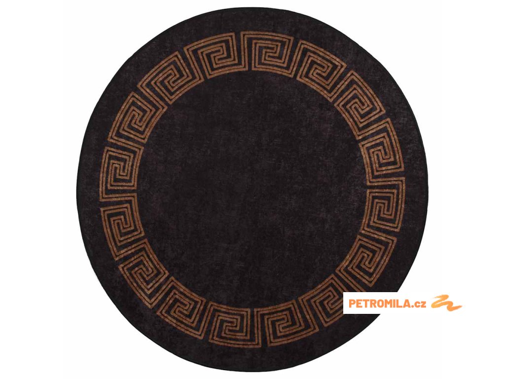 Koberec pratelný ⌀ 120 cm černý a zlatý protiskluzový