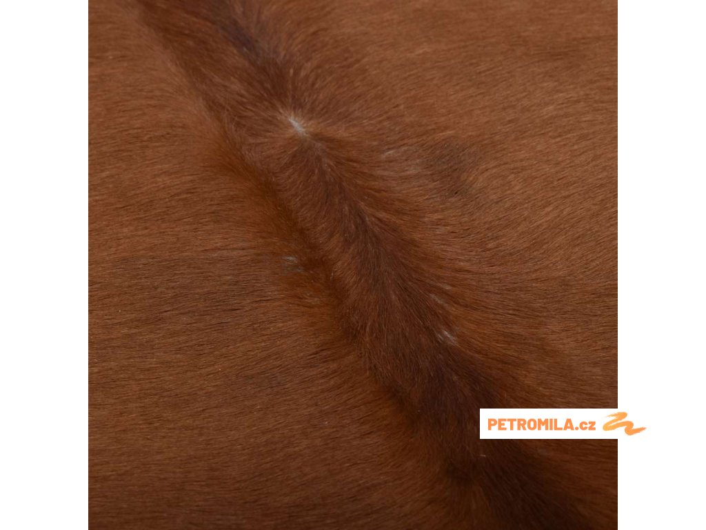 - Koberec z pravé hovězí kůže: Koberec je vyroben z pravé hovězí usně, která se vyznačuje dlouhou životností a je měkká na dotek, hedvábně hladká a lesklá.