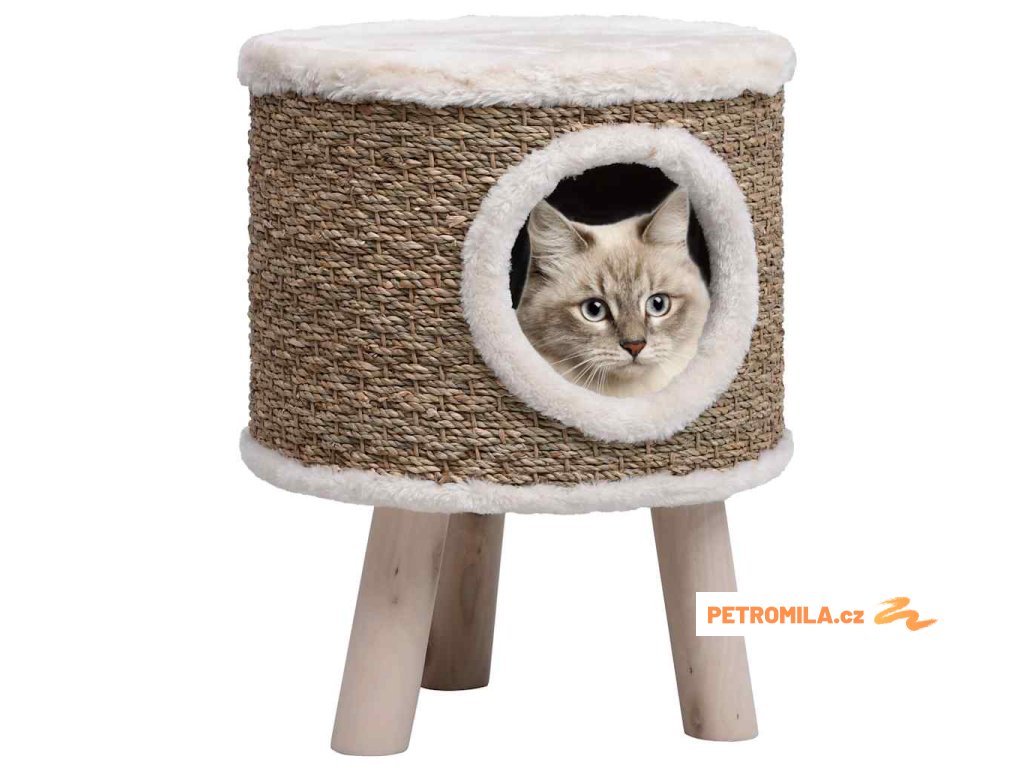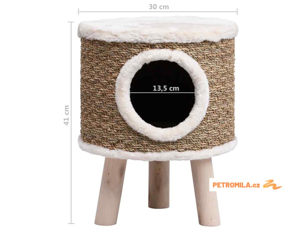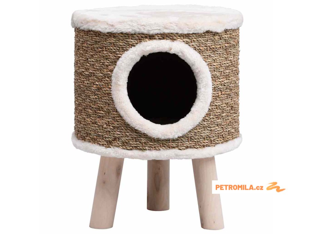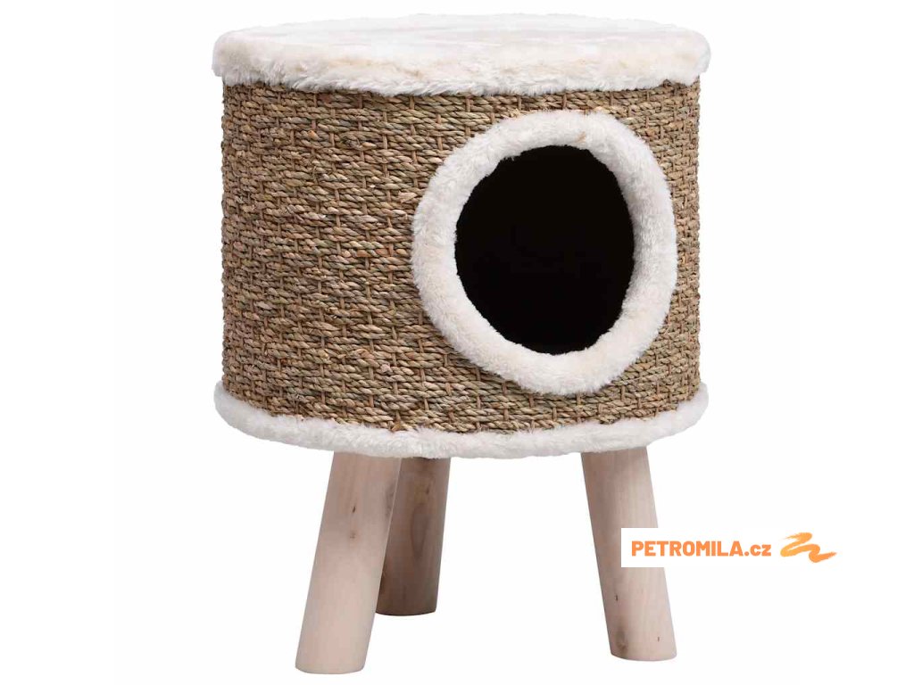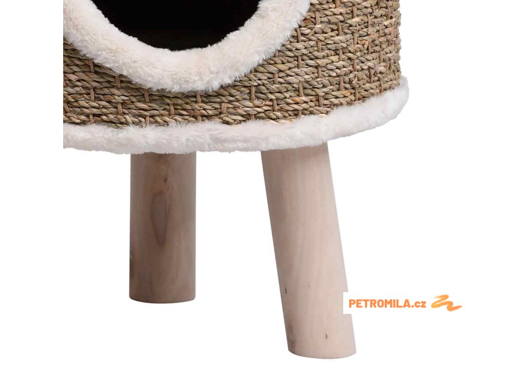 Kočičí domeček s dřevěnými nohami 41 cm mořská tráva