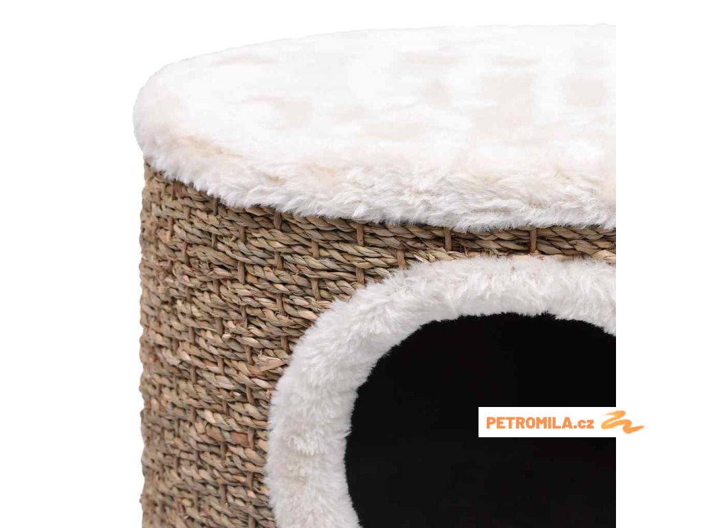 Je vybavený útulným pelíškem s velkým otvorem pro vaše kočky, kde se mohou stočit a zdřímnout si. Poslouží také jako kočičí strom pro zábavné lezení. Podložky z mořské trávy umožňují vašim kočičkám ostřit si drápky.