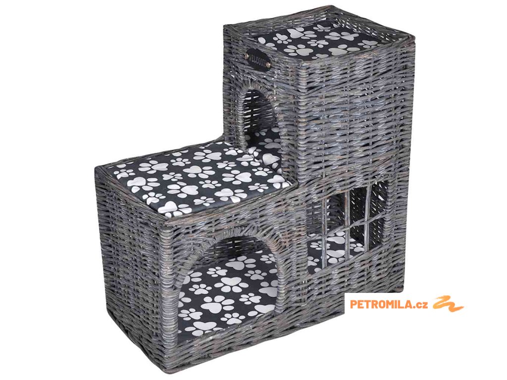 Je to extravagantní a vypracovaný proutěný kočičí pelíšek. Jeho součástí je silně polstrovaná měkká poduška, takže je opravdu útulný a pohodlný. Tento kočičí domeček je vyroben z vrbového proutí, je tedy bytelný, ale zároveň lehký, takže se dá snadno přenášet. Tento kočičí domeček můžete používat také venku, v zahradě nebo na terase, a to jak pro kočky a koťata, tak i pro psy a štěňata. Slouží ke spánku, odpočinku a hře. Vaši mazlíčci si budou užívat sluneční paprsky, když se budou slunit na jeho horní ploše!