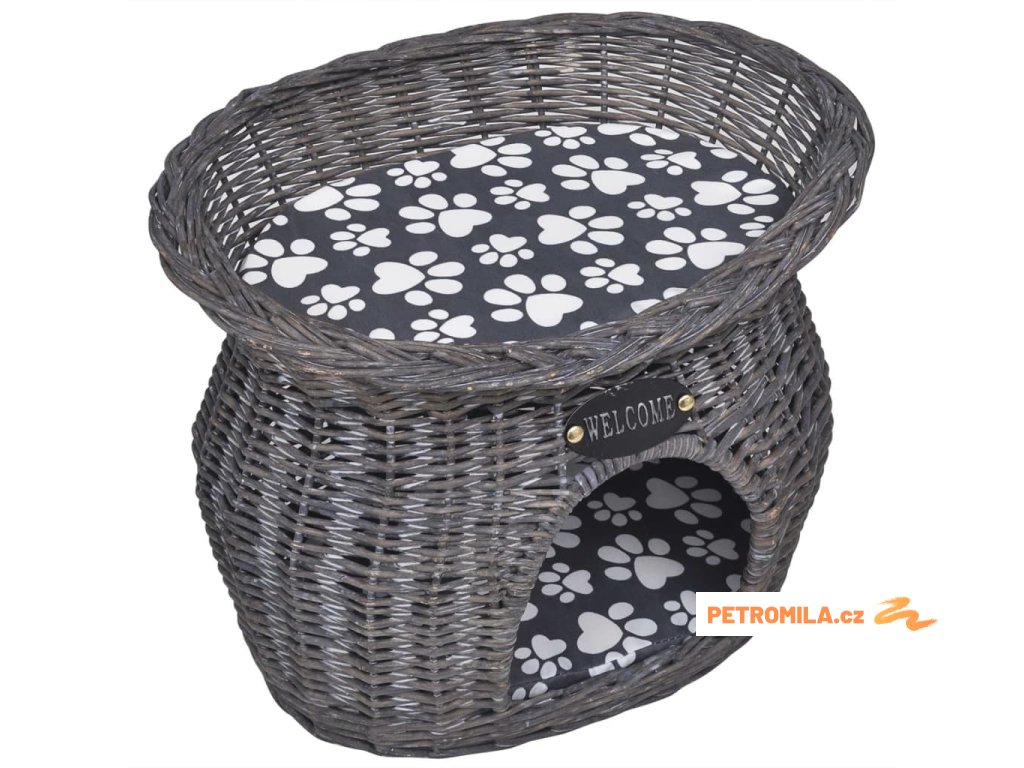 Je to extravagantní a vypracovaný proutěný kočičí pelíšek. Jeho součástí je silně polstrovaná měkká poduška, takže je opravdu útulný a pohodlný. Tento kočičí domeček je vyroben z vrbového proutí, je tedy bytelný, ale zároveň lehký, takže se dá snadno přenášet. Tento kočičí domeček můžete používat také venku, v zahradě nebo na terase, a to jak pro kočky a koťata, tak i pro psy a štěňata. Slouží ke spánku, odpočinku a hře. Vaši mazlíčci si budou užívat sluneční paprsky, když se budou slunit na jeho horní ploše!