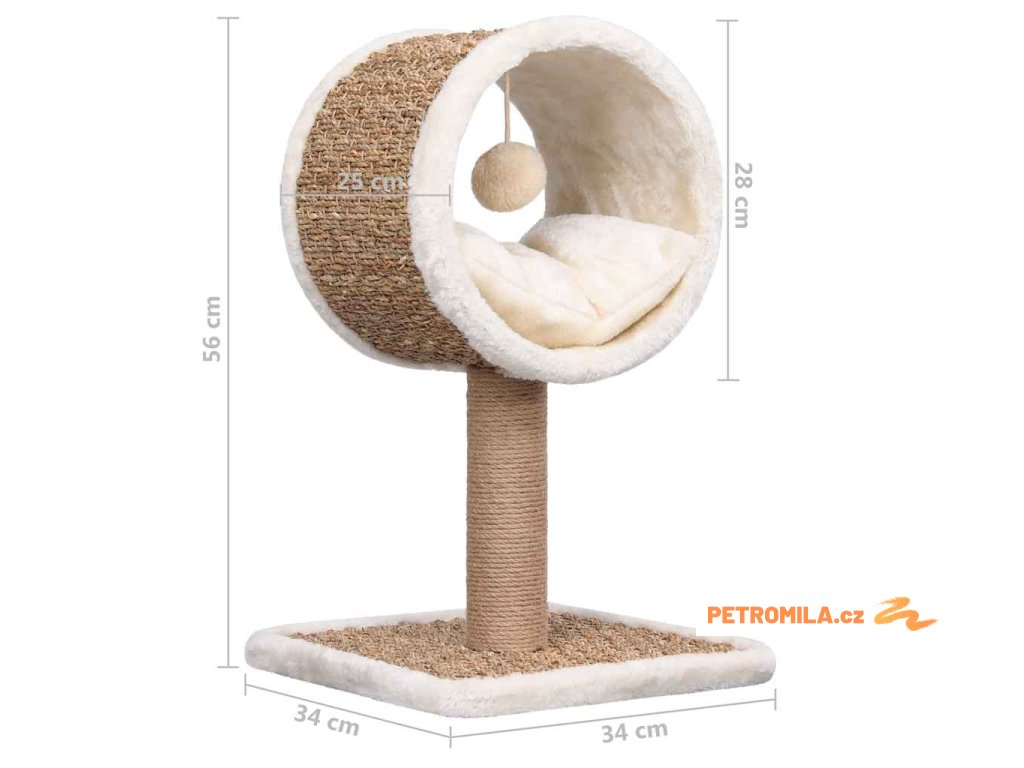 Kočičí strom dá vašim malým kamarádům příležitost protáhnout se a proběhnout, zejména během chladných zimních měsíců, kdy jsou zavření doma. Škrabací sloupky jsou omotané mořskou trávou, na které si vaše kočičky mohou pohodlně a snadno brousit své drápky. Škrabadlo má také zavěšenou hračku a horní odpočinkový tunel, aby se vaši malí přátelé zabavili. Základna je robustní a stabilní.
