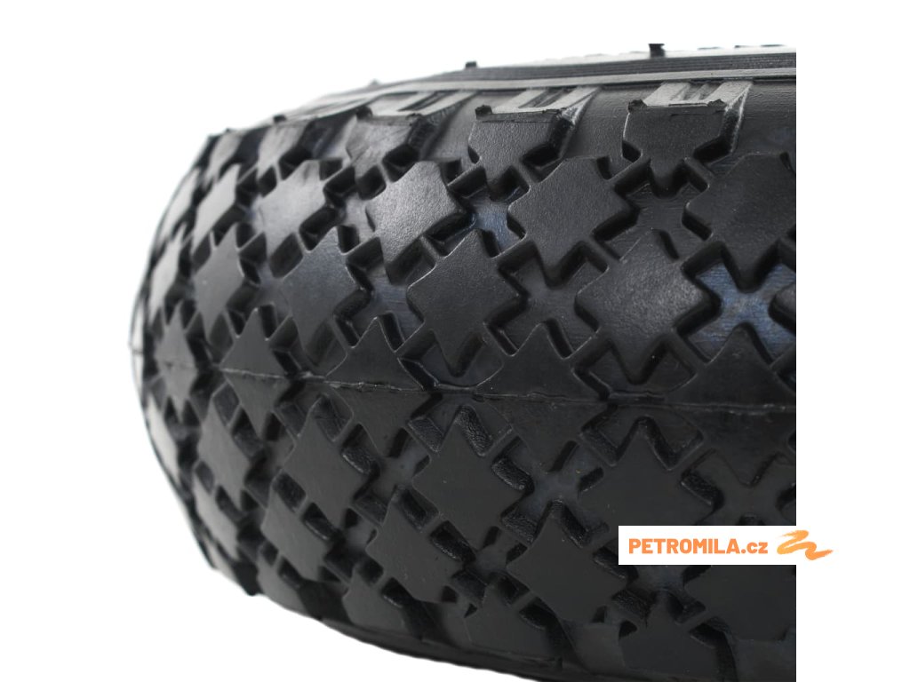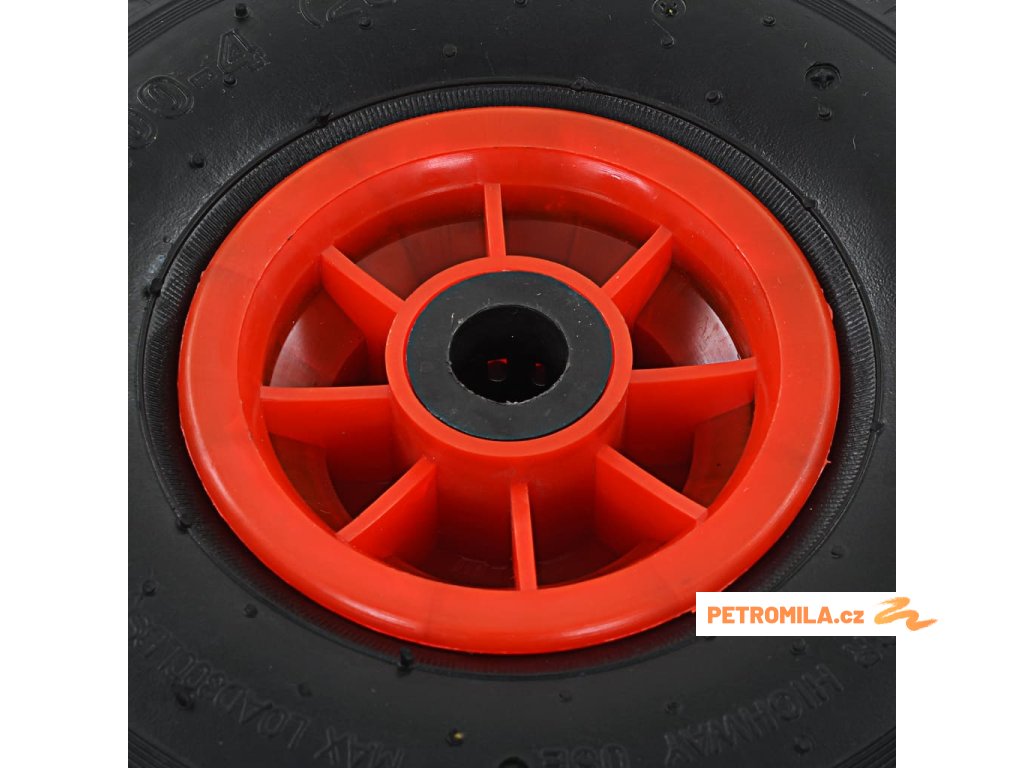 Solidní pneumatiky jsou vyrobeny z odolného, otěruvzdorného pryžového materiálu a mají speciálně designovaný vzorek, který zvyšuje přilnavost k povrchu při vyšších rychlostech. Ráfky kol jsou vyrobeny z robustního plastu. Náhradní kolečka k vozíku mají univerzální velikost a lze je snadno instalovat do rudlů, ručních vozíků apod.