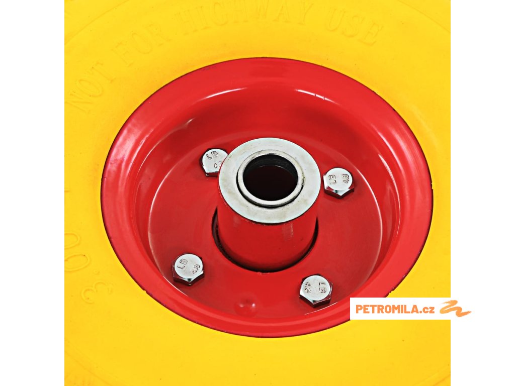 Solidní pneumatiky jsou vyrobeny z odolného, otěruvzdorného PU elastomeru a mají speciálně designovaný vzorek, který zvyšuje přilnavost k povrchu při vyšších rychlostech. Ráfky kol jsou vyrobeny z odolného kovu. Náhradní kolečka k vozíku mají univerzální velikost a lze je snadno instalovat do rudlů, ručních vozíků apod.