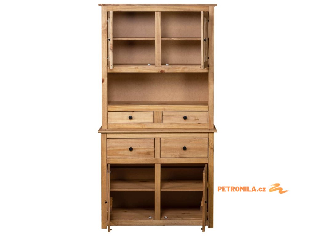 - Otevřená přihrádka, 4 zásuvky, 2 dvířka a 2 prosklená dvířka