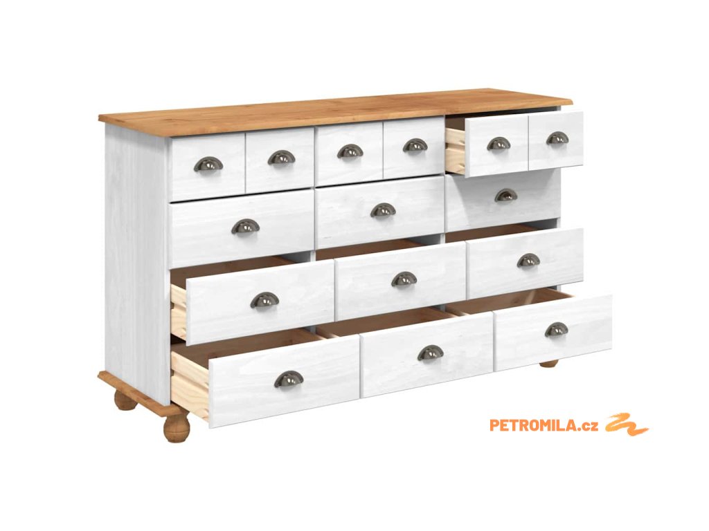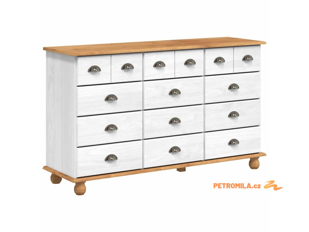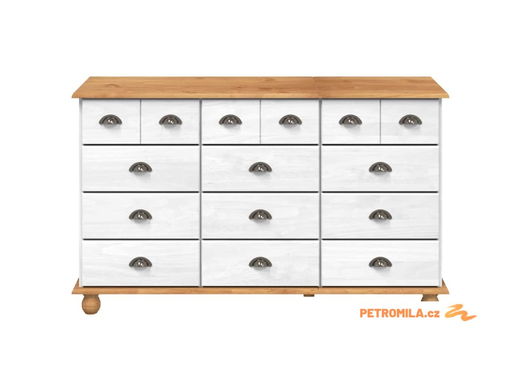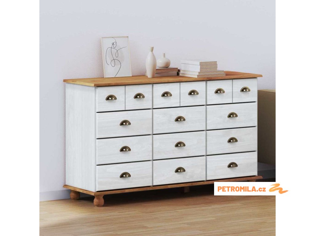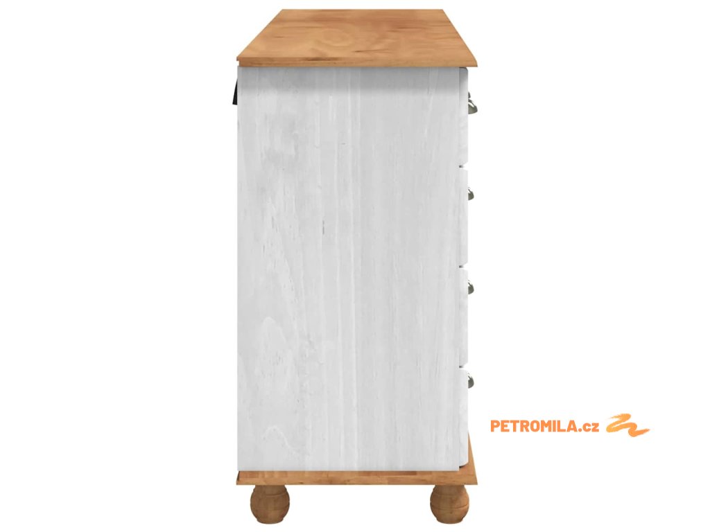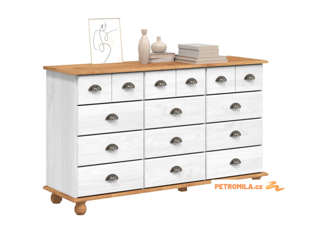 - Masivní borová konstrukce – Tato komoda je z prvotřídního masivního borového dřeva, takže je fakt silná a odolná. Není to jen o síle, ale taky vypadá skvěle a dodává místnosti elegantní nádech díky své přirozené textuře.