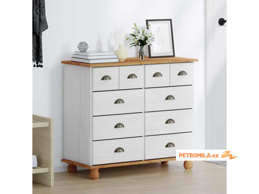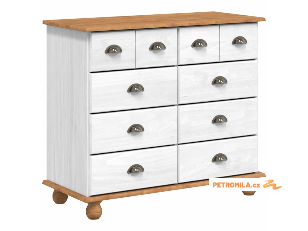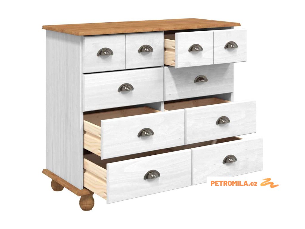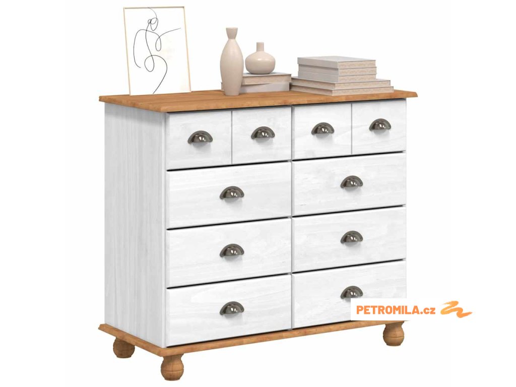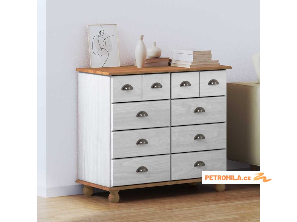 - Materiály: Vyrobená z masivního borového dřeva, tahle komoda je odolná a spolehlivá, s přirozeným povrchem, suitable for co se hodí k různým dekorům a bez problémů snáší každodenní používání.