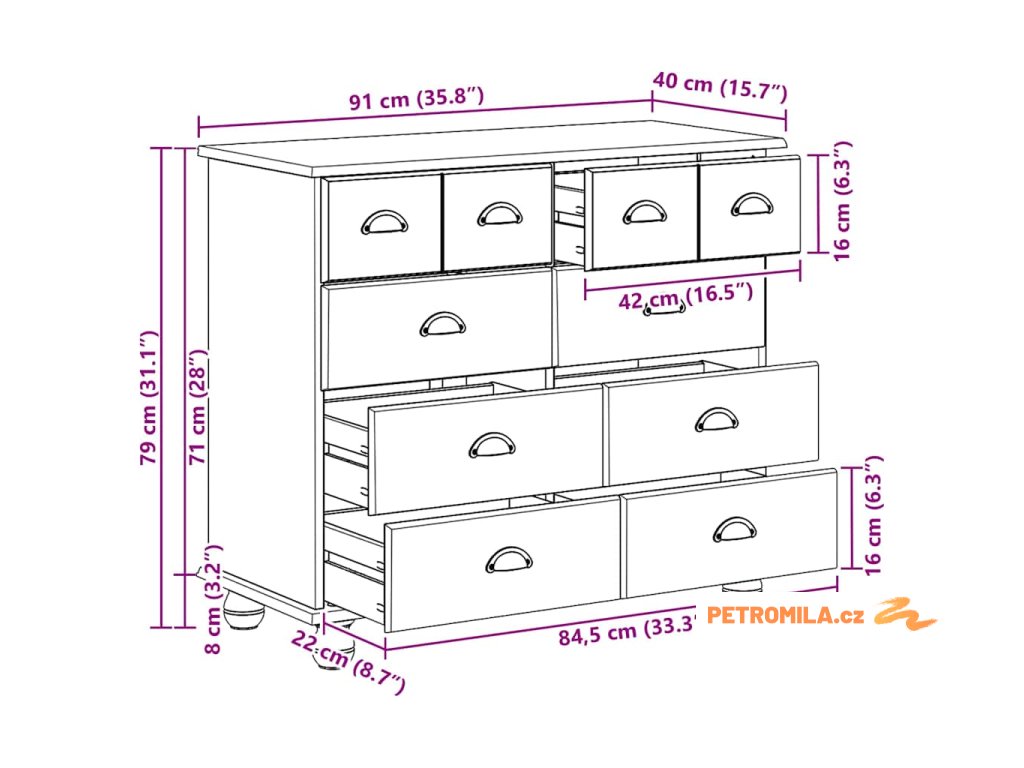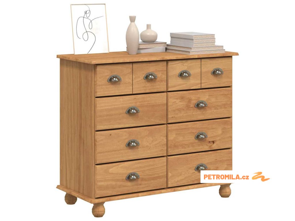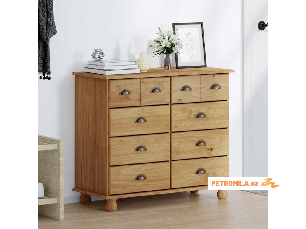 - Materiály: Vyrobená z masivního borového dřeva, tahle komoda je odolná a spolehlivá, s přirozeným povrchem, suitable for co se hodí k různým dekorům a bez problémů snáší každodenní používání.