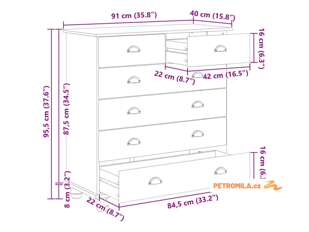- Funkční úložný prostor: Tato komoda má spoustu zásuvek, ideálních na oblečení, doplňky a další věci. Každá zásuvka se snadno otevírá, takže si pohodlně vezmeš všechno, suitable for co potřebuješ, a zároveň si udržíš elegantní vzhled.