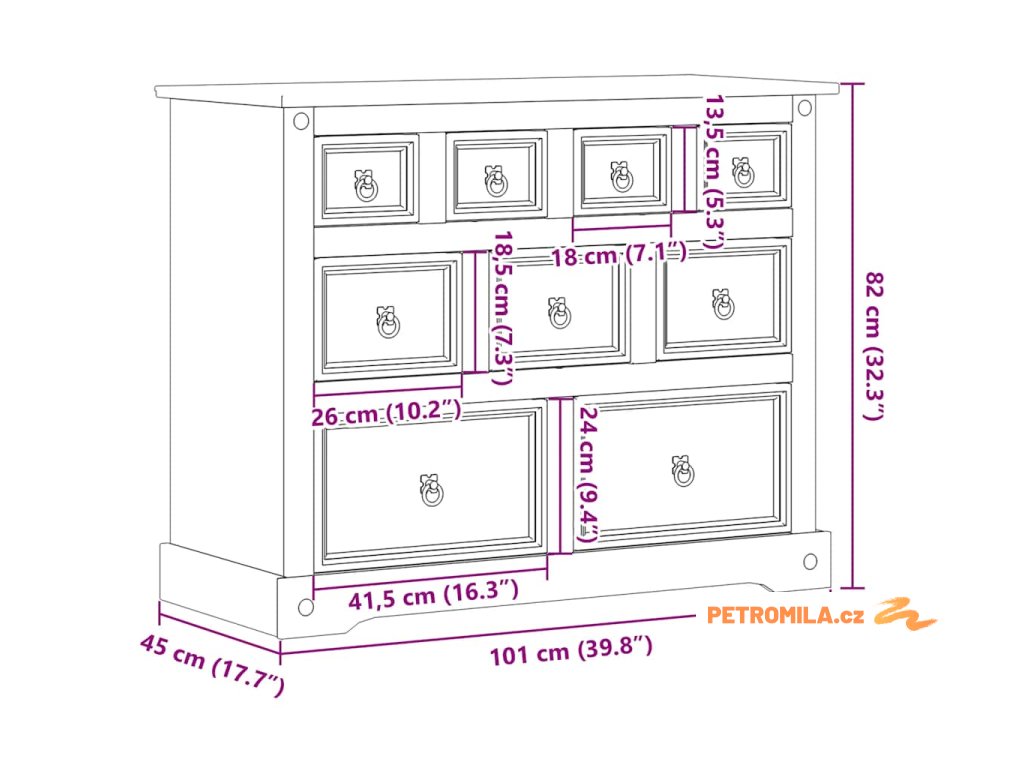Komoda Corona 101 x 45 x 82 cm masivní borové dřevo
