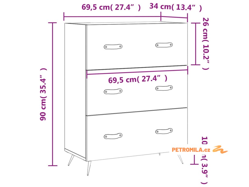 - Rozměry: 69,5 x 34 x 90 cm (Š x H x V)