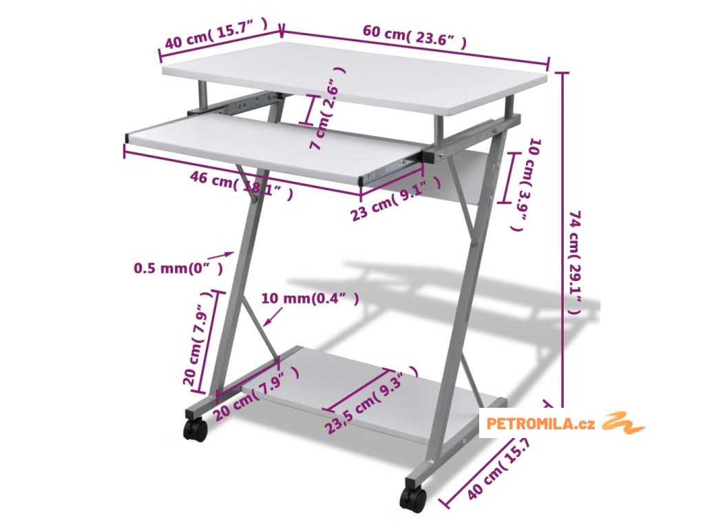 Prostorná pracovní plocha usnadňuje používání vašeho počítače a zároveň umožňuje také pohodlné čtení a psaní. Tento počítačový stůl má vysouvací desku pro klávesnici a spodní poličku, kam můžete umístit váš počítač nebo tiskárnu. PC stůl, vyrobený z dřevotřísky a práškově lakovaného ocelového rámu, vám jistě bude sloužit po dlouhá léta.