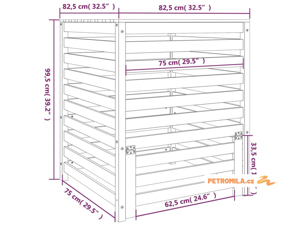 Kompostér 82,5 x 82,5 x 99,5 cm masivní borové dřevo