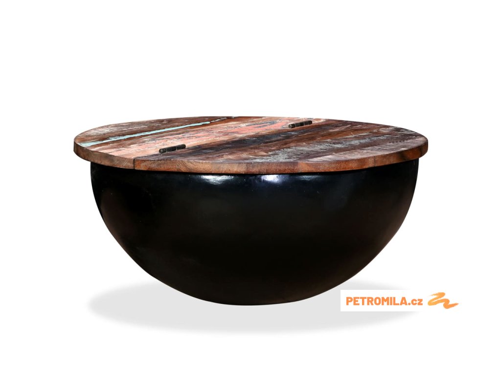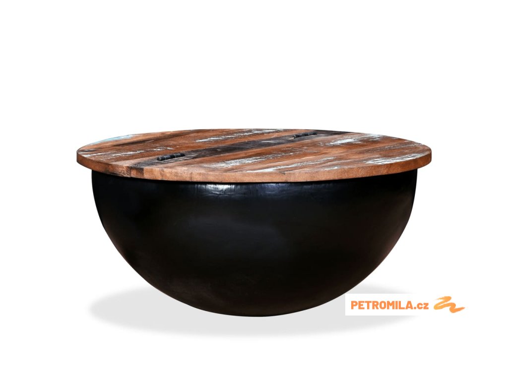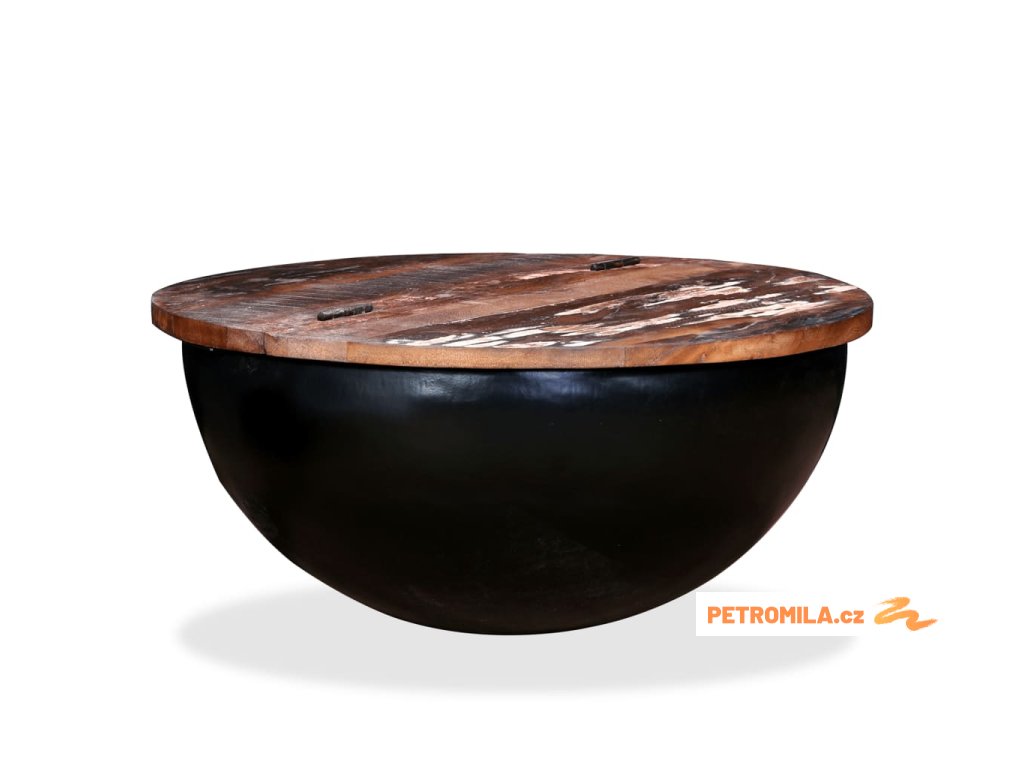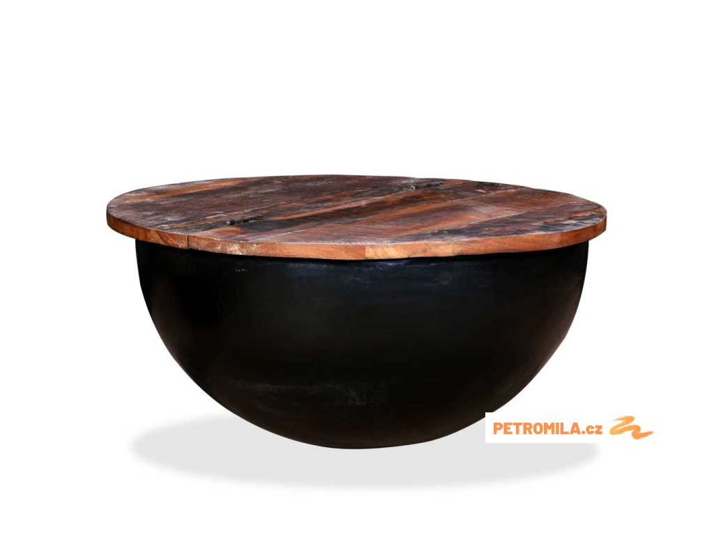 Konferenční stolek, masivní recyklované dřevo, černý, tvar misky