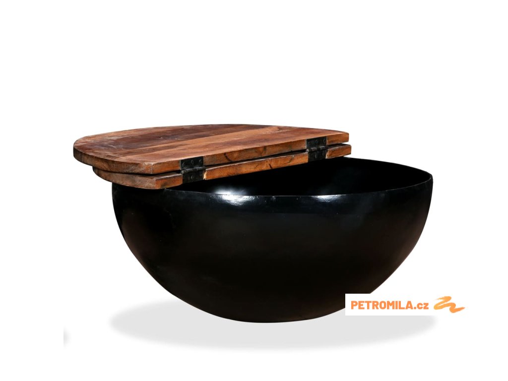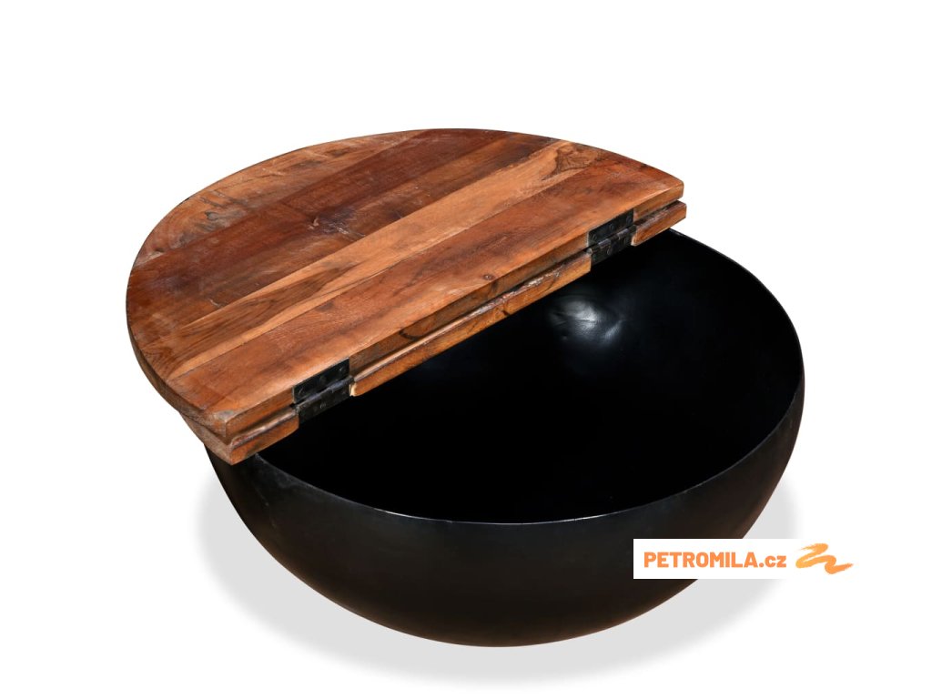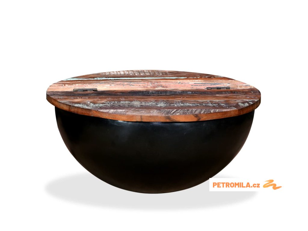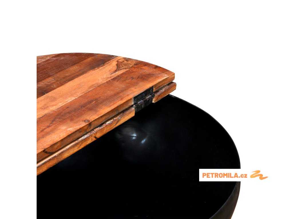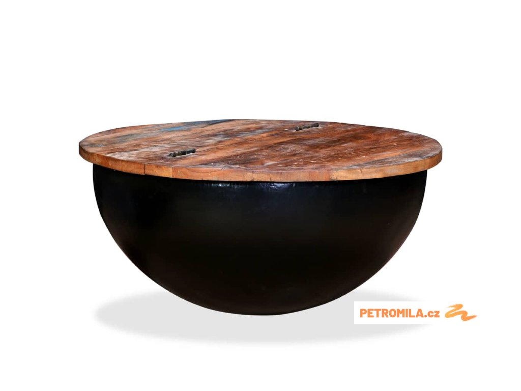 Konferenční stolek, masivní recyklované dřevo, černý, tvar misky