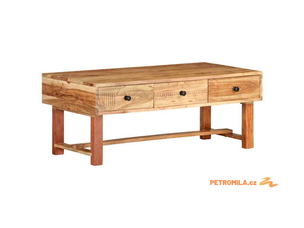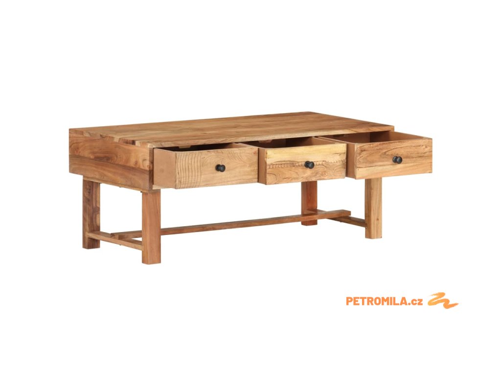 Tento stolek do obývacího pokoje je vyrobený z masivní akácie, tropického tvrdého dřeva, které je odolné vůči povětrnostním vlivům a má dlouhou životnost. Konferenční stolek můžete uplatnit také jako odkládací stolek nebo stolek k pohovce. Ve stolku jsou zásuvky, které jsou ideální pro ukládání různých věcí, jako jsou CD, DVD, časopisy, sluchátka, příslušenství k telefonu a podobně.