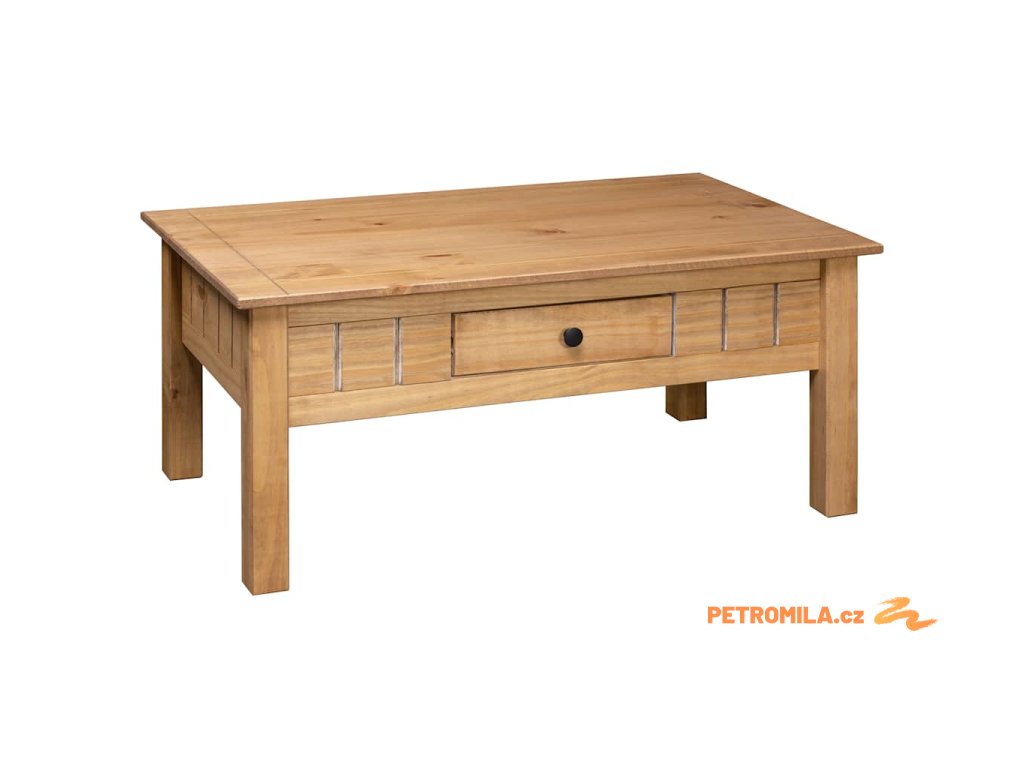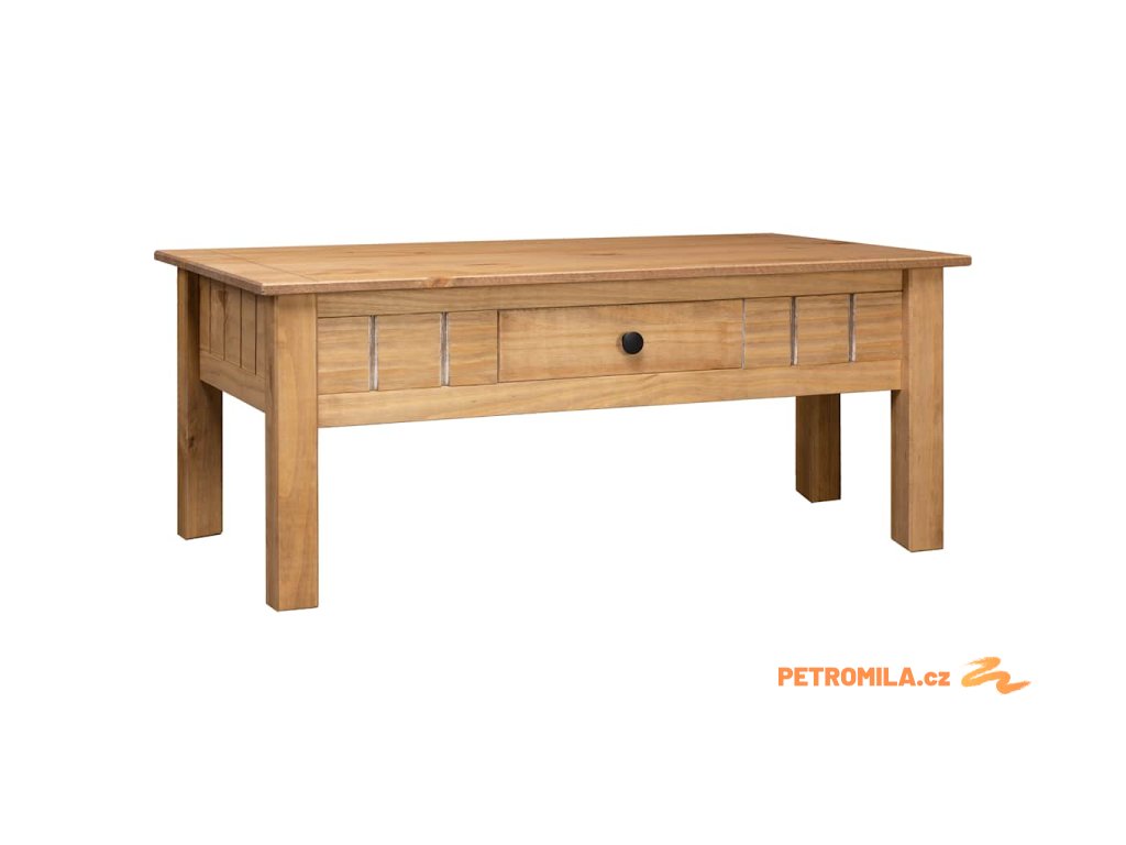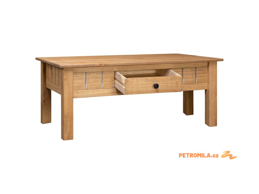 Stolek ke gauči je zhotovený z masivního borového dřeva, je výjimečně robustní a má dlouhou životnost. Konferenční stolek má zásuvku, ve které můžete přechovávat vaše časopisy, knihy, dálkové ovládání a další malé předměty na dosah ruky.