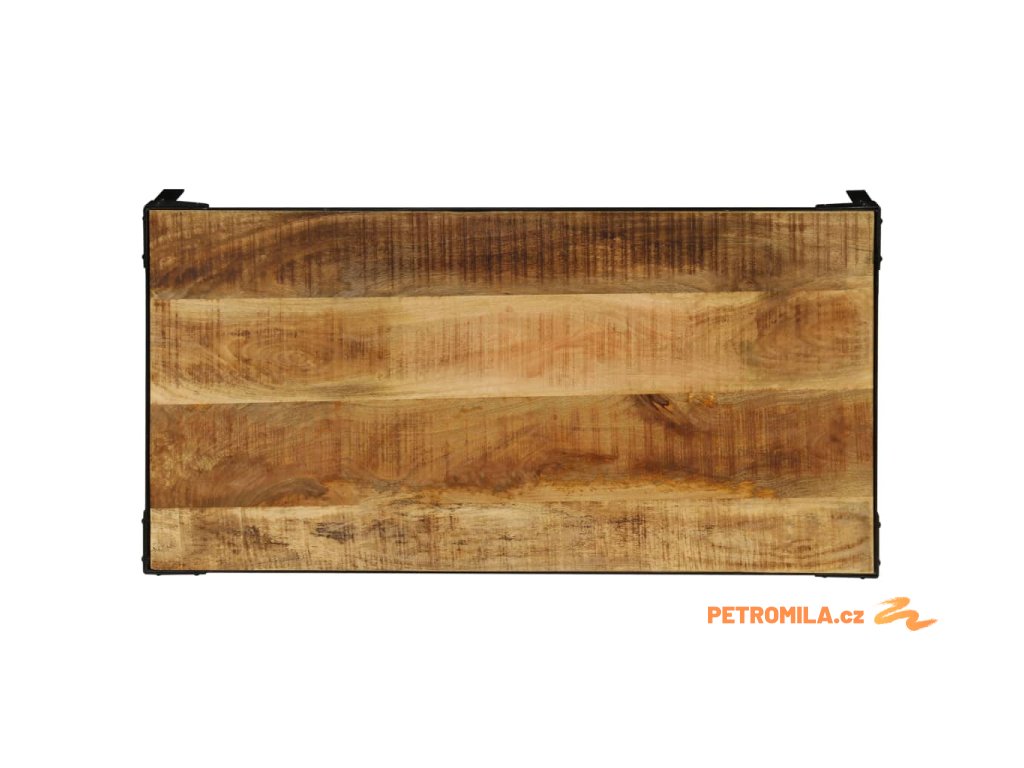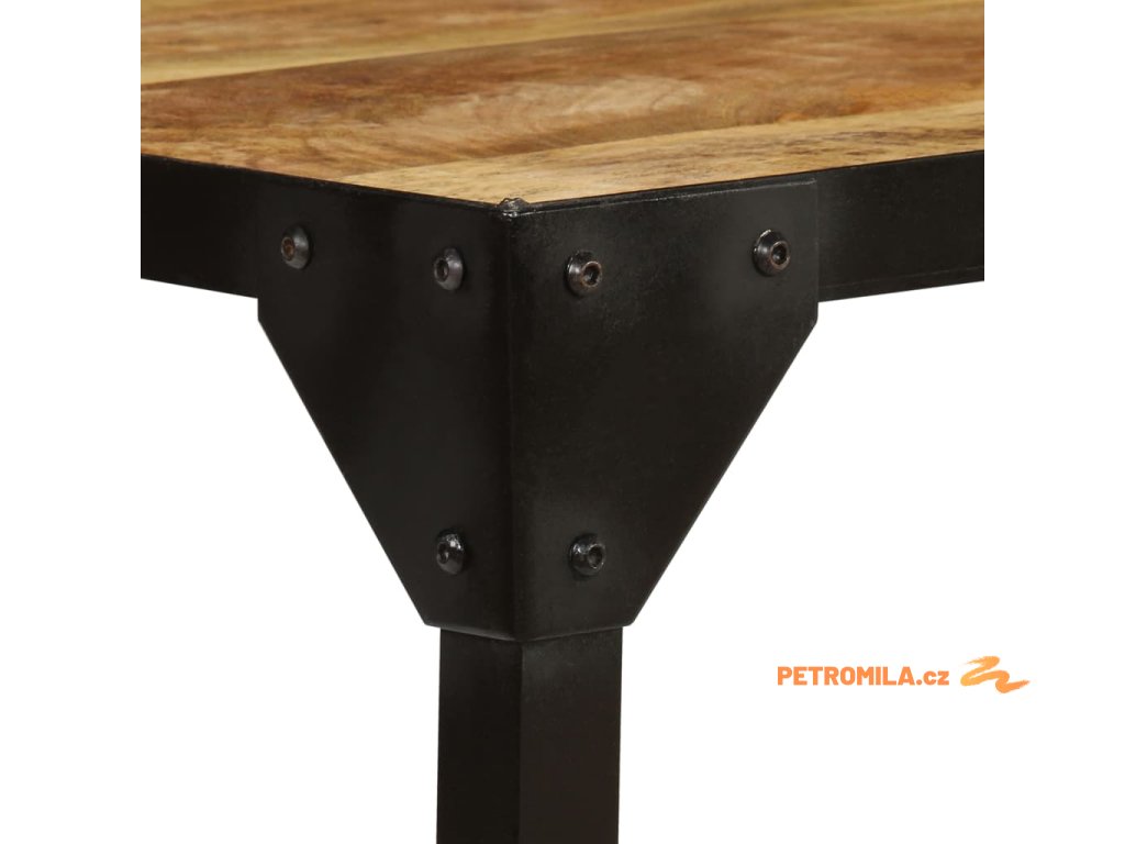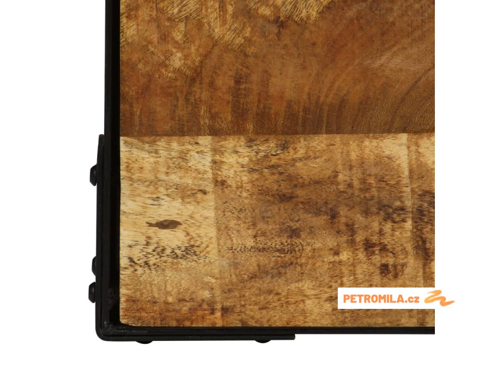 - Materiál: masivní hrubé mangovníkové dřevo + ocelový rám s práškovým nástřikem