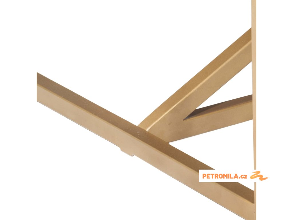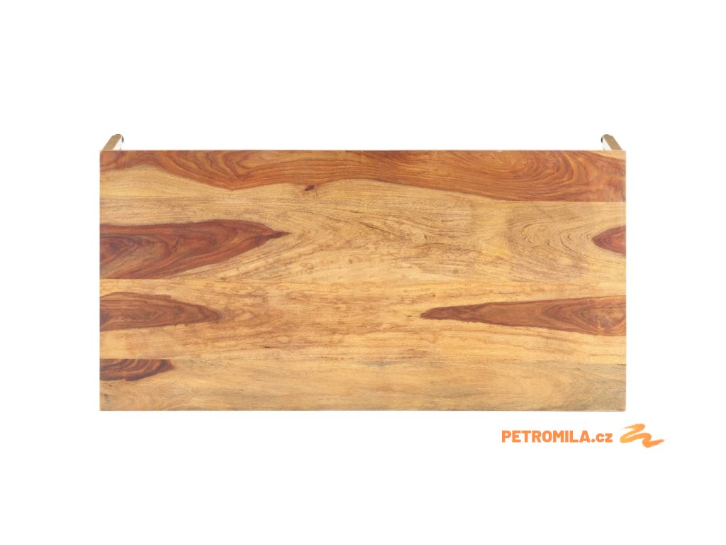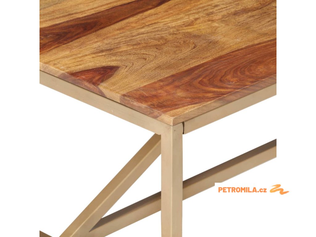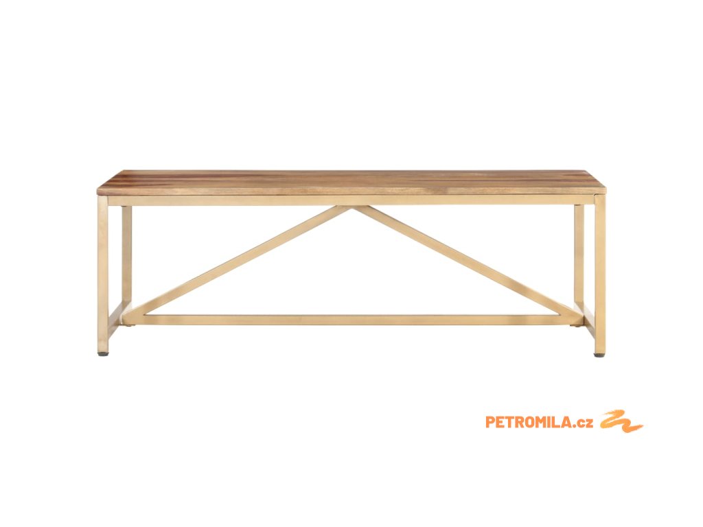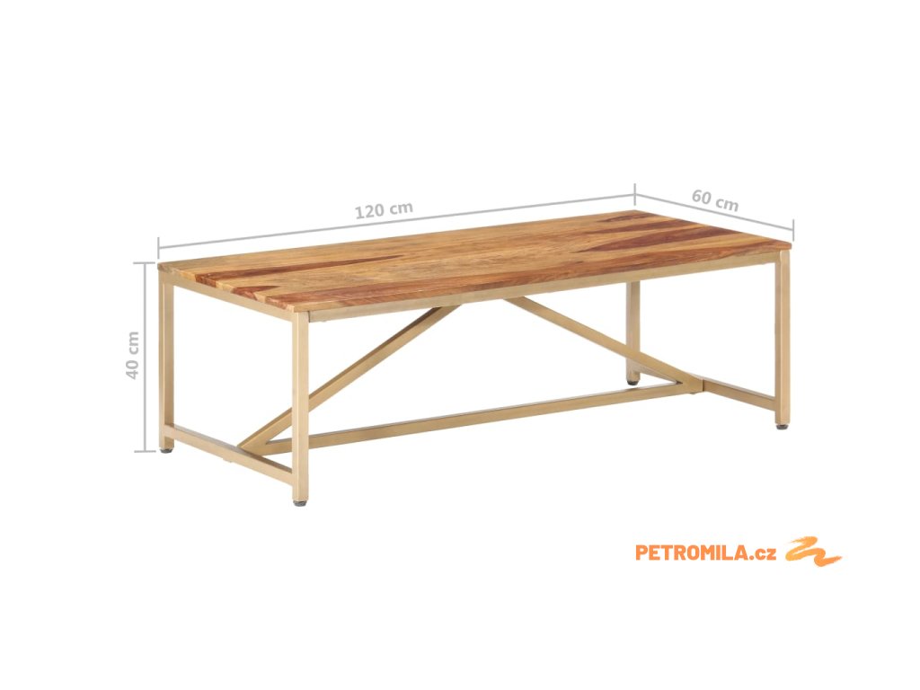 Tento praktický konferenční stolek je vyroben z masivního dřeva a lze jej použít také jako odkládací stolek, přístavný stolek nebo stolek k pohovce. Řemeslné zpracování a krásná kresba dřeva dává každému kusu nábytku jeho jedinečný a od všech ostatních mírně odlišný charakter. Jeho masivní horní deska poskytuje stabilní a bezpečný povrch pro servírování nápojů nebo pro vystavení váz, mís s ovocem či jiných dekorací. Ke stabilitě přispívá také mosazná ocel s práškovým nástřikem. Tento dřevěný stolek se snadno sestavuje.