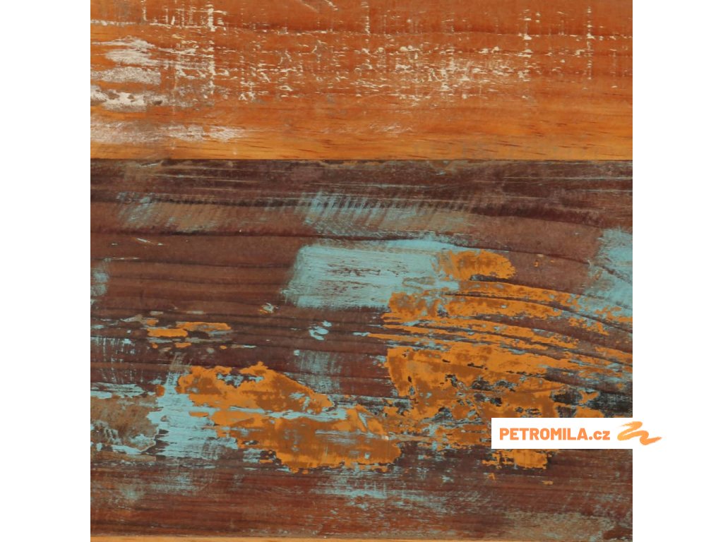 - Materiál: masivní recyklované dřevo a ocel s práškovým nástřikem