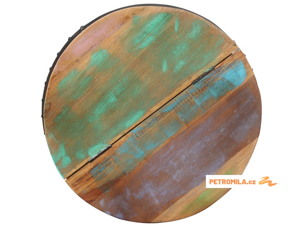 Tento výrazný odkládací stolek je vyrobený z masivního recyklovaného dřeva, které dává každému kusu jedinečný charakter, jímž se lehce liší od všech ostatních. Nábytek z recyklovaného dřeva si zachovává vlastnosti různých typů dřevin, jako jsou teak, mangovník a akácie. Toto dřevo je také pevné, stabilní a odolné a v neposlední řadě krásně vypadá. Známky opotřebení a viditelná kresba dřeva vypovídají o bohaté minulosti každého kusu a zároveň mu propůjčí jedinečný vzhled. Konferenční stolek je celý ručně vyrobený a zásluhou řemeslného zpracování získal svůj působivý retro styl. Každý krok výrobního procesu se provádí s největší péčí, ať už jde o rekombinaci, leštění, natírání nebo voskování.