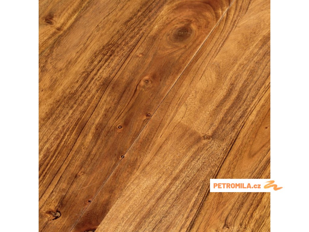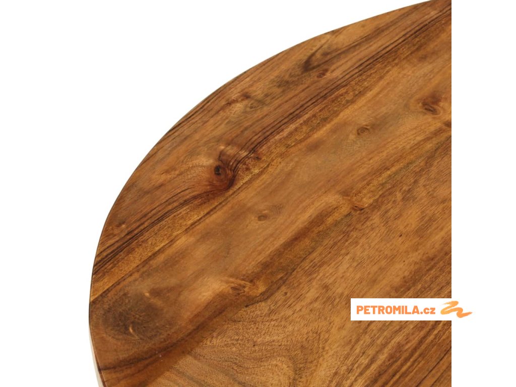 - Materiál: masivní akáciové dřevo s medově hnědou povrchovou úpravou, práškově lakovaná ocel