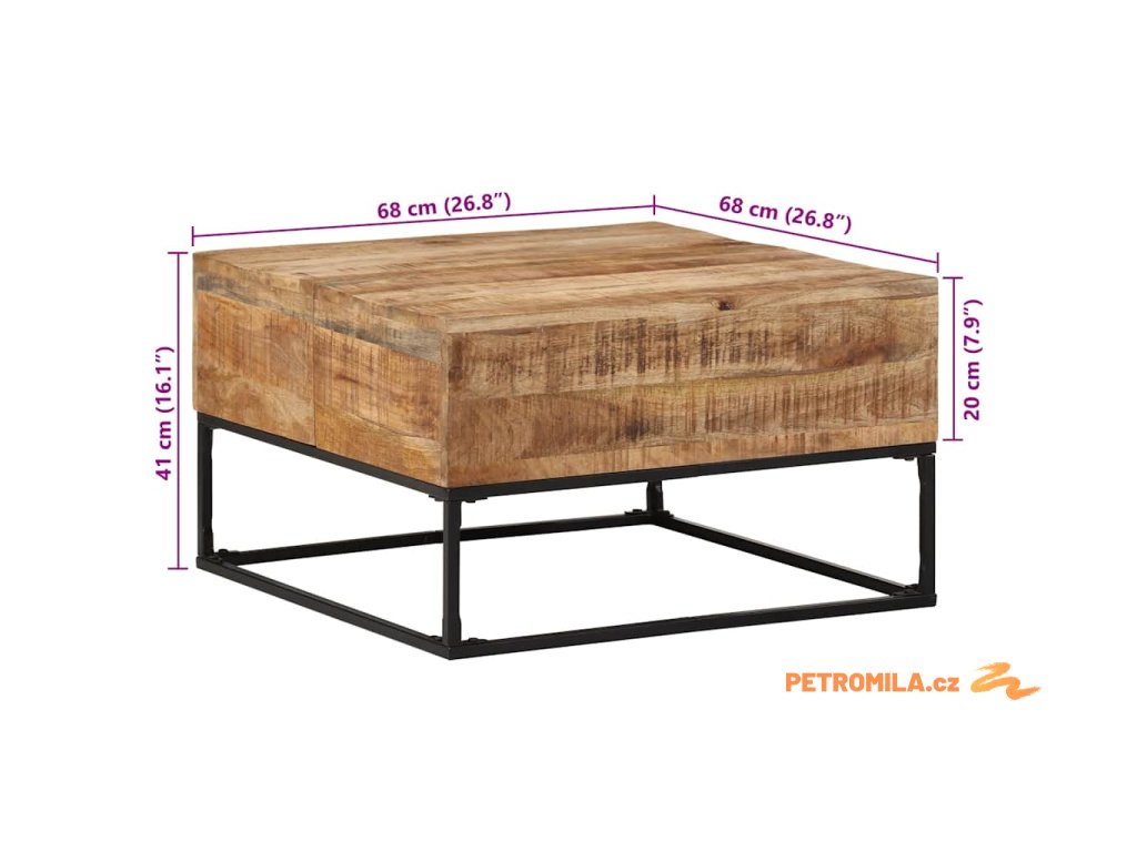 Konferenční stolek 68 x 68 x 41 cm hrubé mangovníkové dřevo