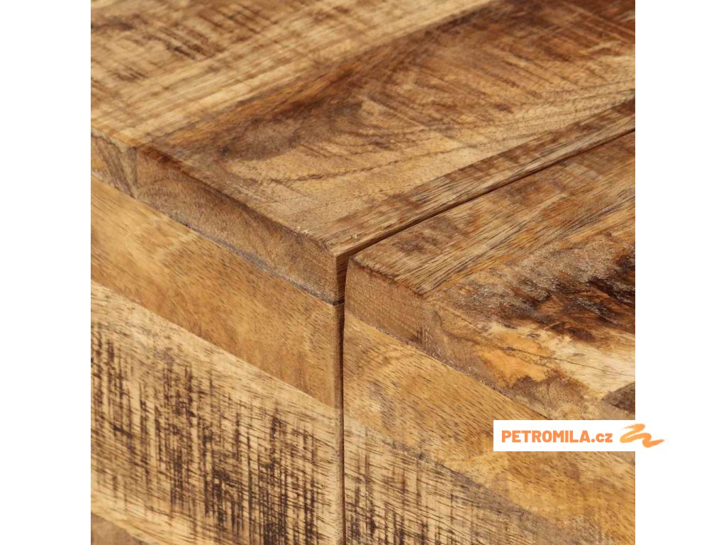 - Materiál: hrubé mangovníkové dřevo s přírodní povrchovou úpravou, železo s černým práškovým nástřikem