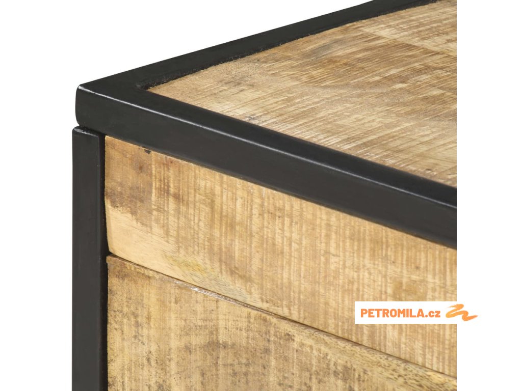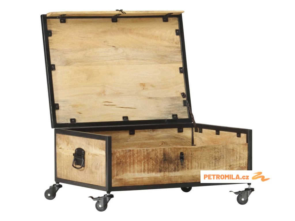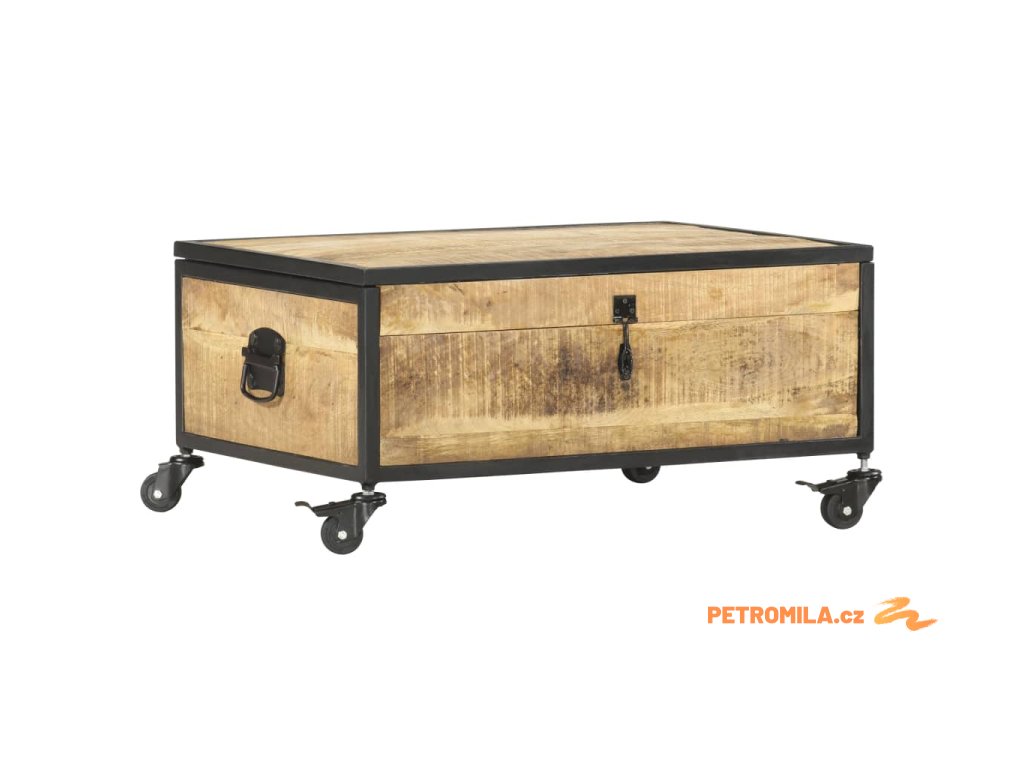Stolek má vysoce odolnou konstrukci a je vyrobený z mangovníkového dřeva, takže je mimořádně bytelný a odolný. Mangovník je husté robustní tvrdé dřevo, které má na povrchu krásné hnědé a zlaté pruhy a kontury. Každá fáze výrobního procesu se provádí s mimořádnou péčí, ať už se jedná o leštění, natírání nebo lakování. Za výklopnými dvířky se skrývá úložný prostor, který je jako dělaný k přehlednému uspořádání vašich multimediálních zařízení, knížek, časopisů a různých dalších maličkostí, jež chcete mít na dosah ruky. Můžete jej také použít jako odkládací stolek, úložnou truhlu apod.