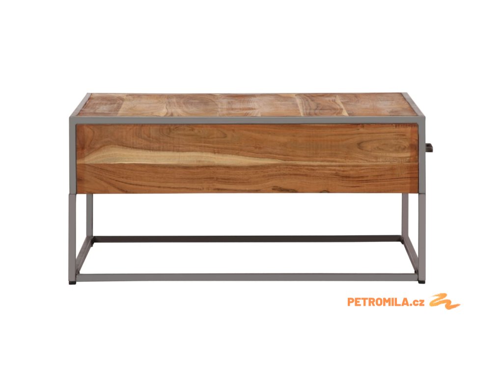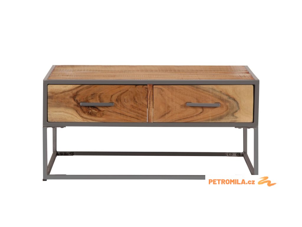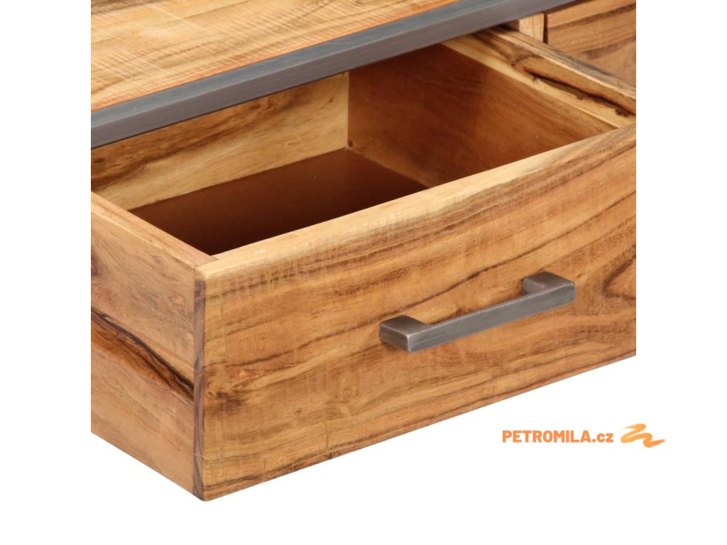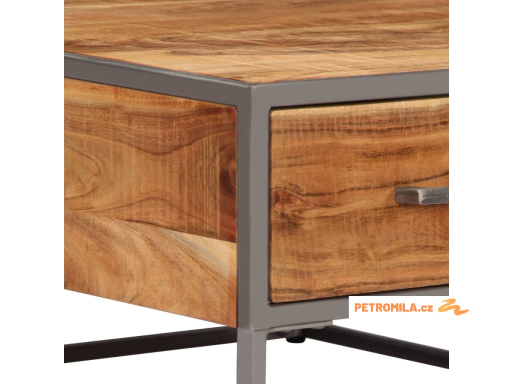 Starožitně vyhlížející stolek k pohovce je vyroben z masivního akáciového dřeva, jehož leštěný a lakovaný povrch mu dodává rafinovaný vzhled. Řemeslné zpracování a vytříbená kresba dřeva činí každý kus nábytku zcela výjimečným a lehce odlišným od ostatních. Stolek do obýváku je vyveden v industriálním stylu a je celý ručně dělaný, přičemž každá fáze výrobního procesu byla provedena s mimořádnou péčí, ať už šlo o leštění anebo lakování. Odkládací stolek disponuje 2 zásuvkami, které vám poskytnou spoustu prostoru k uspořádání vašich multimediálních zařízení, knížek a všelijakých dalších věcí.