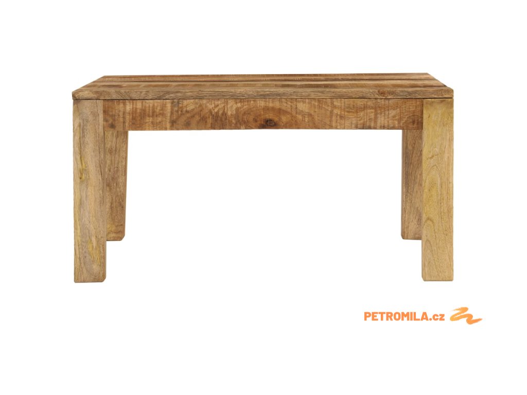 Stolek ke gauči je vyroben z masivního hrubého mangovníkového dřeva, které je pevné, stabilní a odolné a zároveň i krásně vypadá. Zručným řemeslným zpracováním bylo dosaženo velkolepého retro stylu tohoto nábytku. Každý krok výrobního procesu je prováděn s největší péčí, ať už se jedná o leštění, natírání nebo lakování. Díky překrásné kresbě dřeva je každý kus nábytku jedinečný a lehce odlišný od všech ostatních. Pevný dřevěný stolek je ideální k odkládání jídla a nápojů, dekorativních předmětů, knih apod.