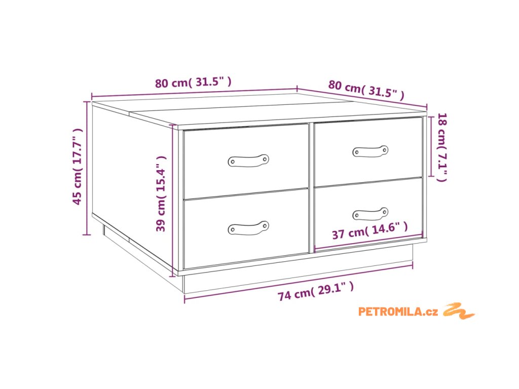 Konferenční stolek 80x80x45 cm masivní borové dřevo