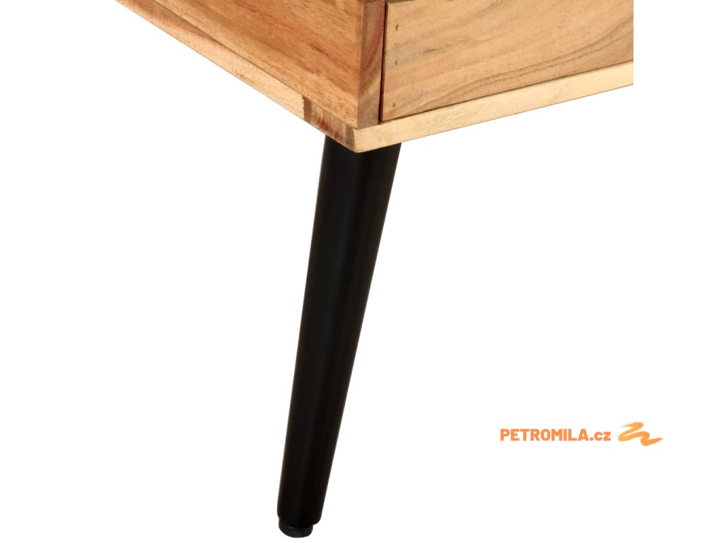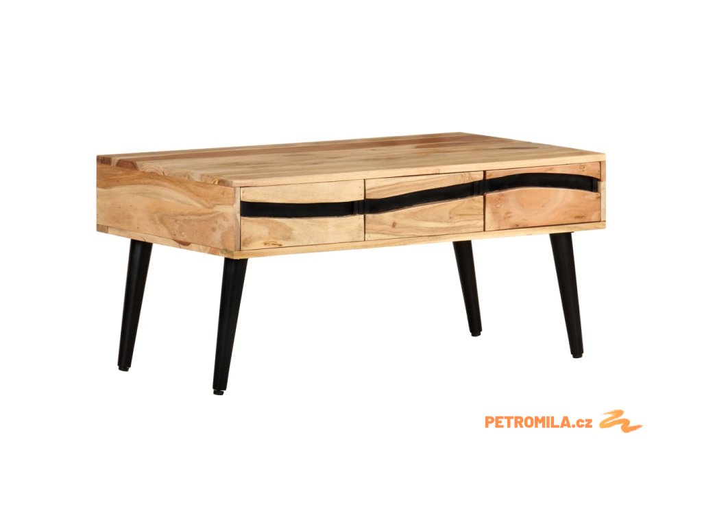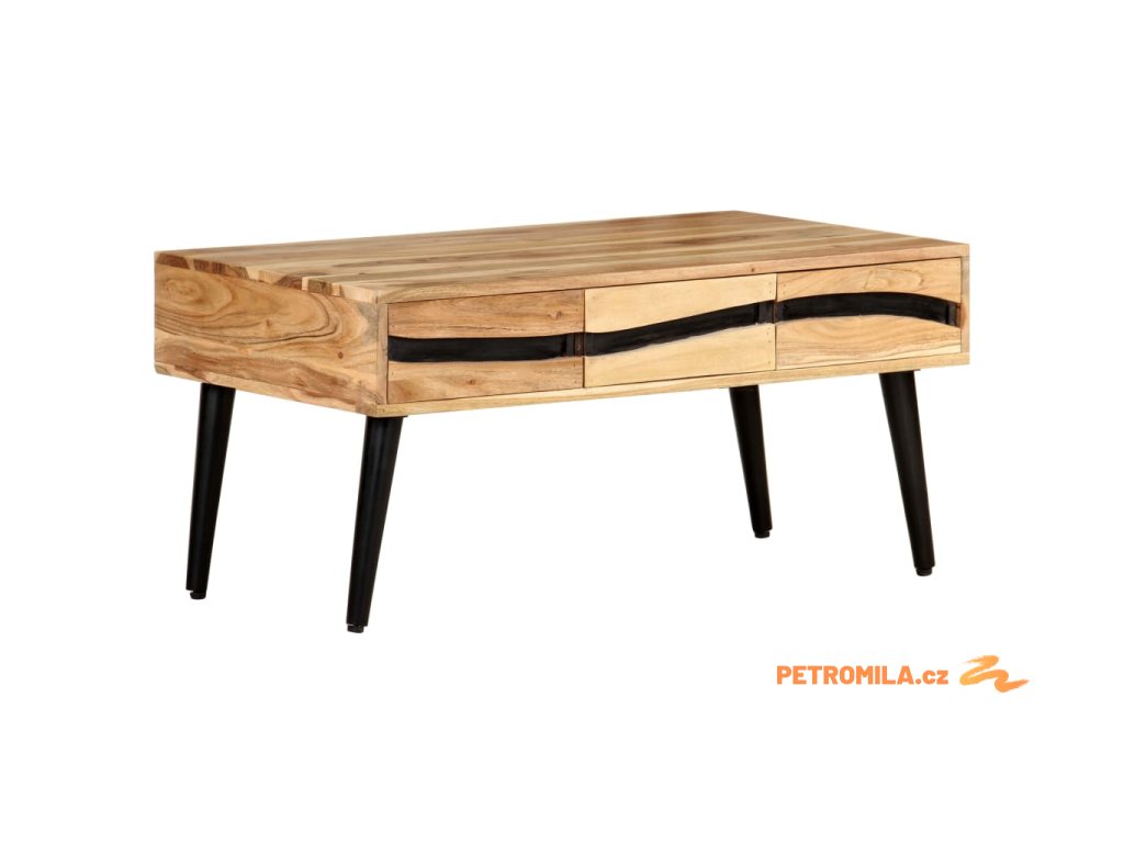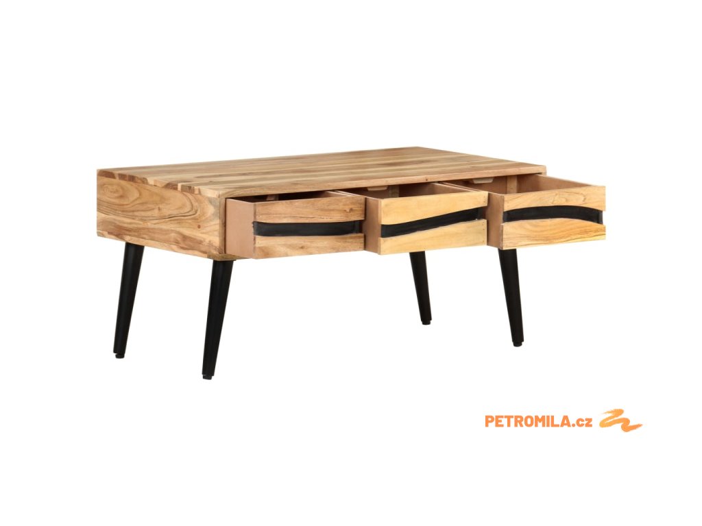Stolek do obývacího pokoje je vyrobený z masivního akáciového dřeva, tvrdého dřeva s hustou kresbou. Tento krásně navržený stolek k pohovce je odolný a atraktivní. Vynikající řemeslné zpracování a krásná kresba dřeva dává každému kusu unikátní a od všech ostatních mírně odlišný charakter. Železné nohy s práškovým nástřikem přispívají k bytelnosti a stabilitě stolku. V dřevěném stolku jsou 3 zásuvky s dostatkem úložného prostoru. Pevná deska stolu nabízí stabilní a bezpečný povrch pro odkládání nejrůznějších potřeb.