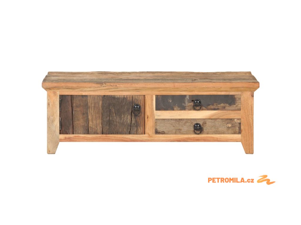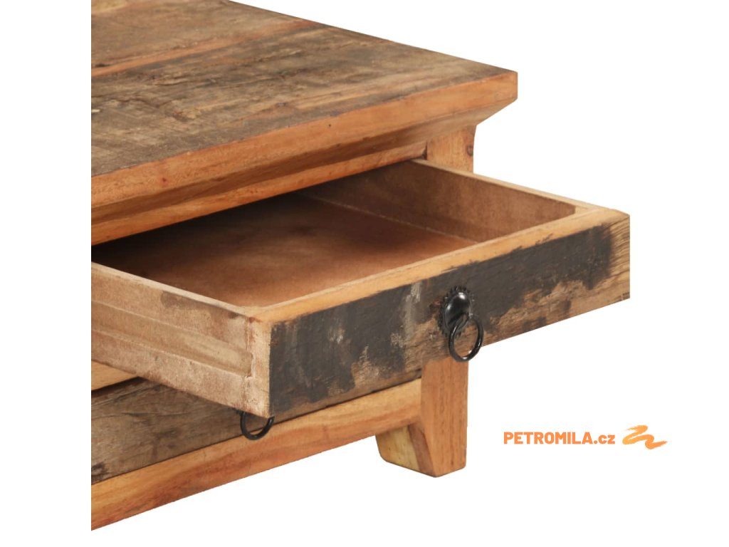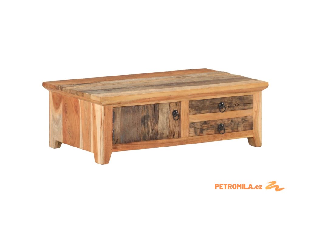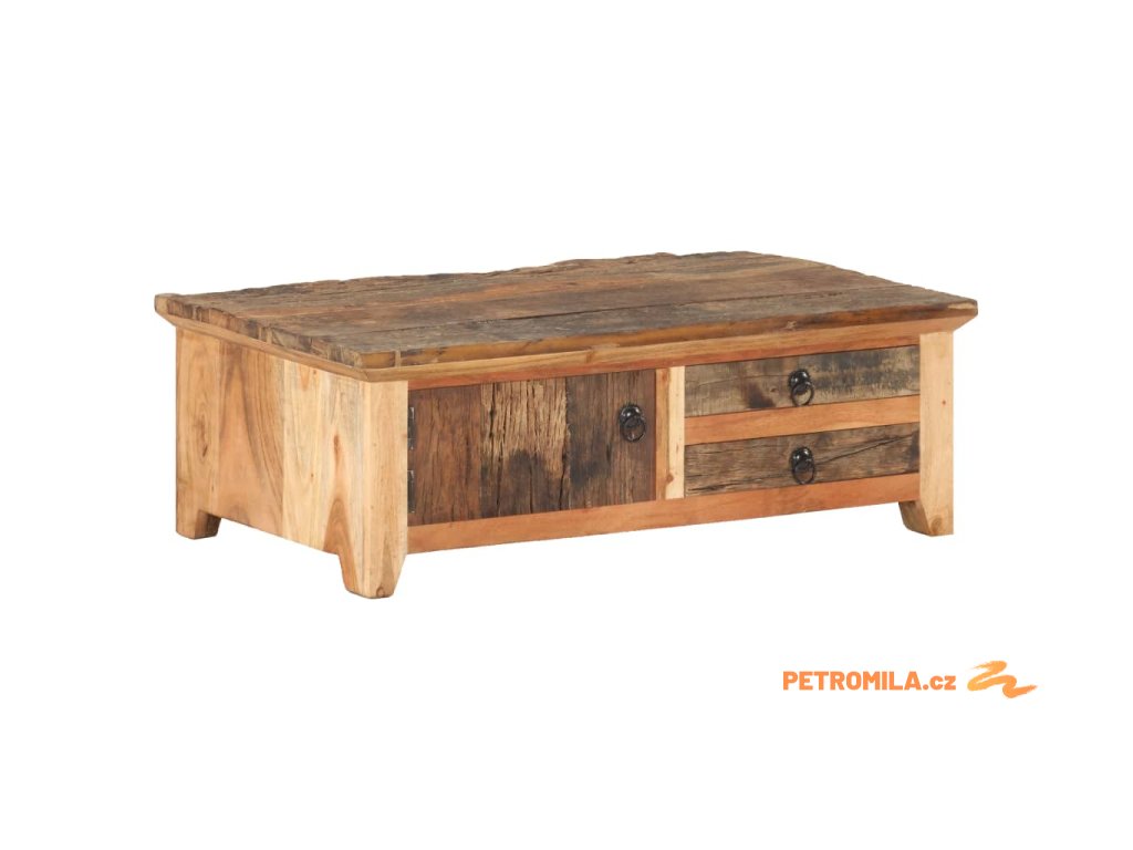 Dekorativní stolek je zhotovený z masivního recyklovaného dřeva, což znamená, že je každý kus zcela unikátní a lehce se liší od všech ostatních. Recyklované dřevo je pevné, stabilní, odolné a zároveň krásně vypadá. Známky opotřebení a zřetelná kresba dřeva vypovídají o bohaté historii každého stolku a dodávají mu jedinečný vzhled. Rám z masivního akáciového dřeva zaručuje mimořádnou stabilitu. Odkládací stolek má jednu přihrádku s dvířky a dvě zásuvky, takže nabízí spoustu místa k přehlednému uspořádání všech věcí, které chcete mít po ruce.