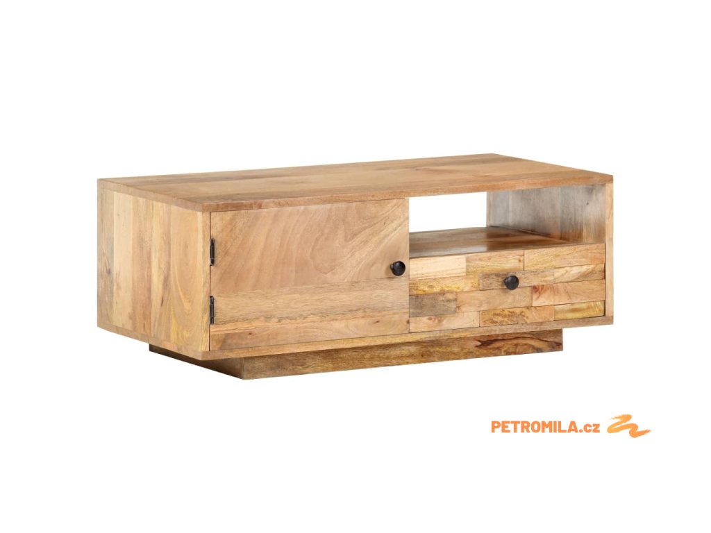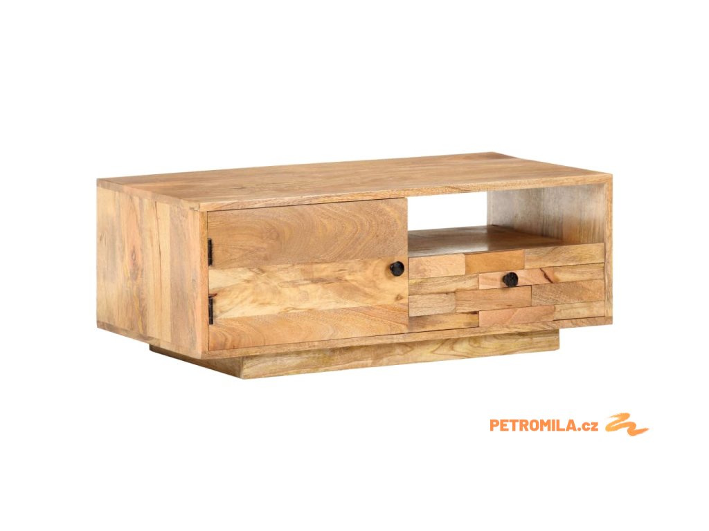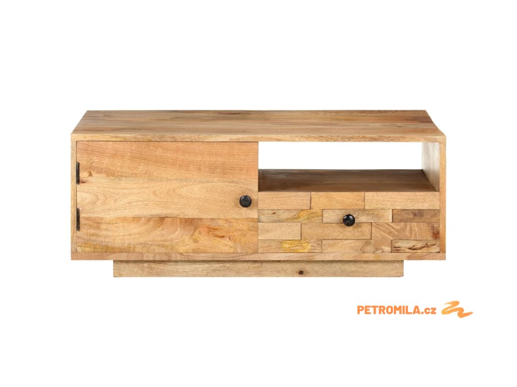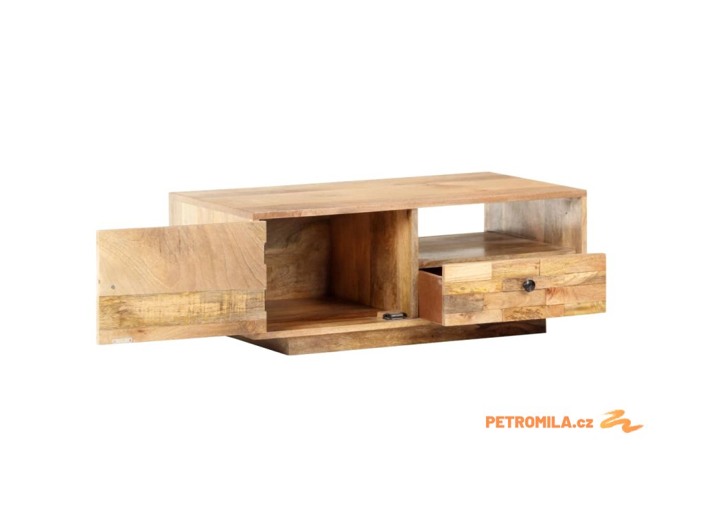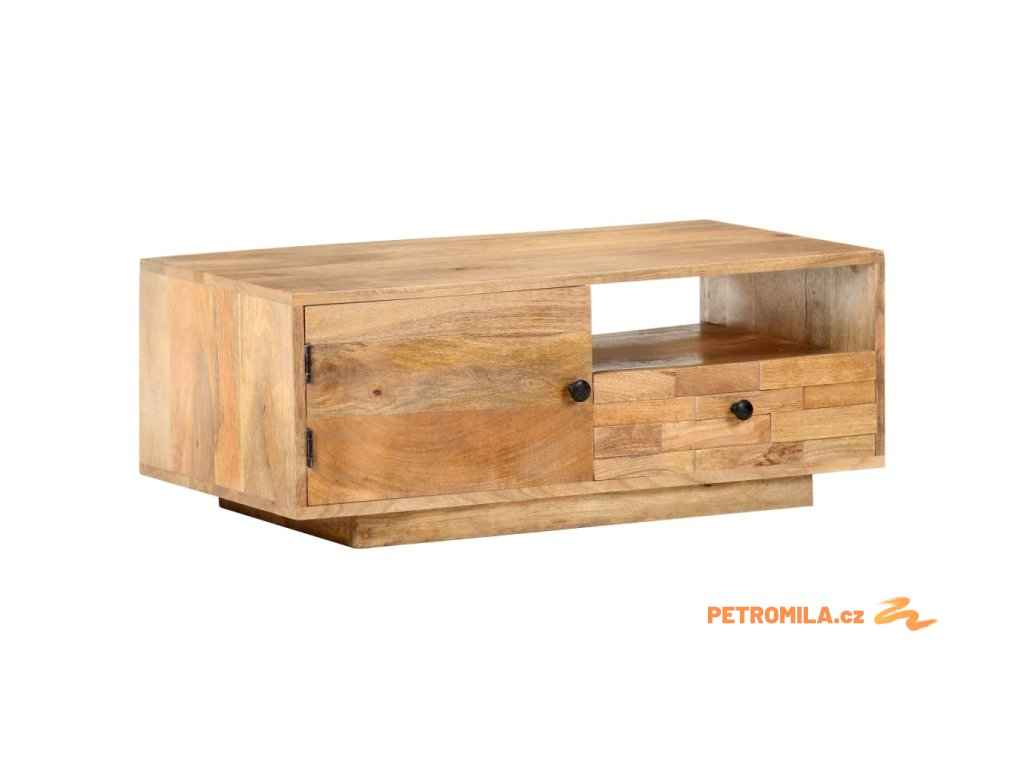 Dekorativní stolek je ručně vyrobený z masivního mangovníku s povrchem ve stylu přírodních fošen. Toto tropické tvrdé dřevo dokáže unést značnou váhu a skvěle odolává opotřebení i působení času, je tedy velice stabilní a dlouho vám vydrží. Zručné zpracování a překrásná kresba dřeva od sebe jednotlivé kusy nábytku lehce odlišují, takže je každý z nich zcela jedinečný. Stolek má jedny dvířka, jednu poličku a jednu zásuvku, a poskytne vám tak spoustu místa, kde si můžete přehledně uspořádat vše, co chcete mít po ruce.