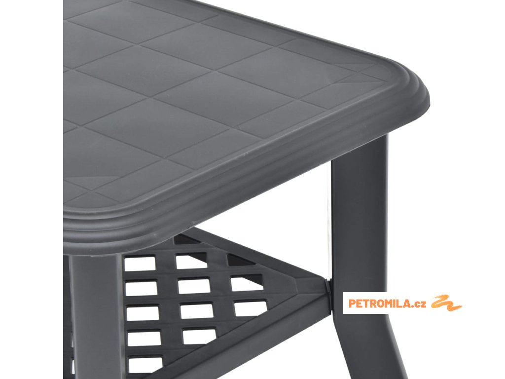 Je zhotovený z klimaticky odolného plastu, takže se nemusíte obávat, že barva stolu vybledne nebo se začne olupovat. Je ideální pro každodenní venkovní použití. Ve spodní části najdete odkládací polici, kam si můžete odkládat časopisy, knihy nebo jiné náležitosti, které chcete mít na dosah ruky. Stolek je lehký a snadno se přenáší. Žádná montáž není nutná.