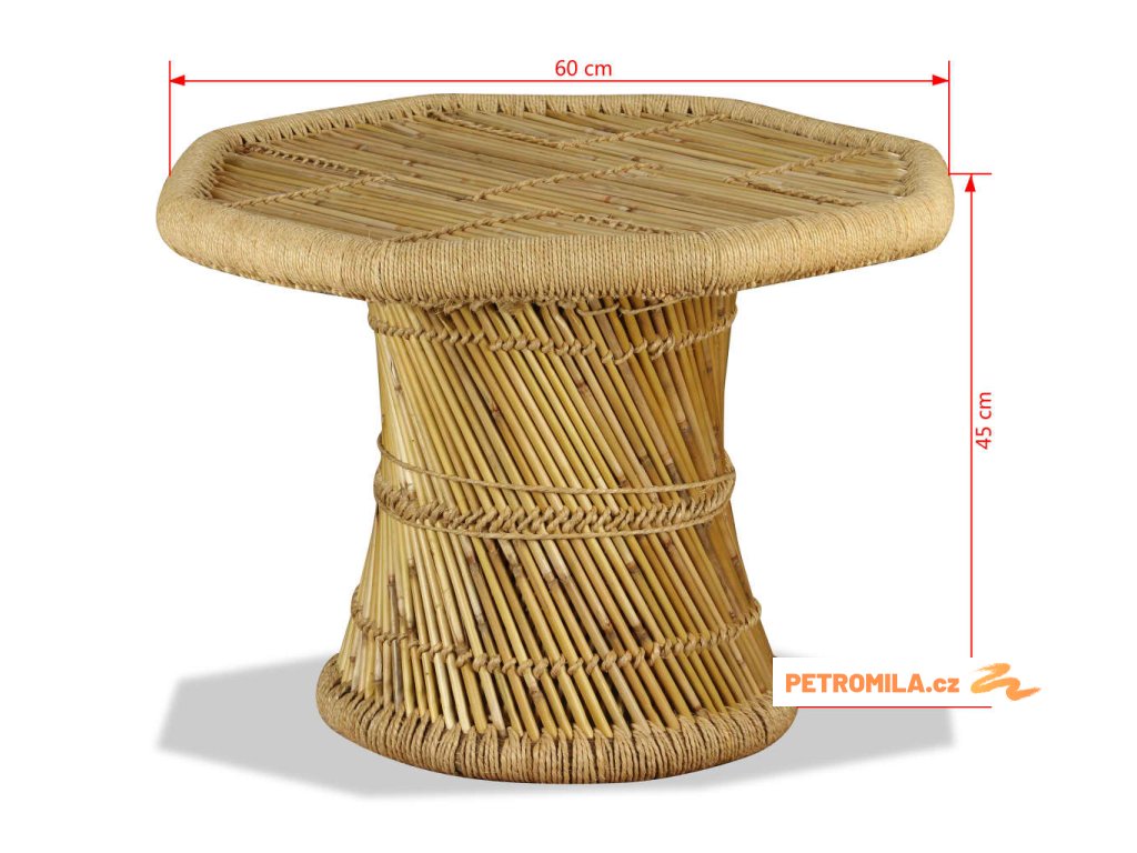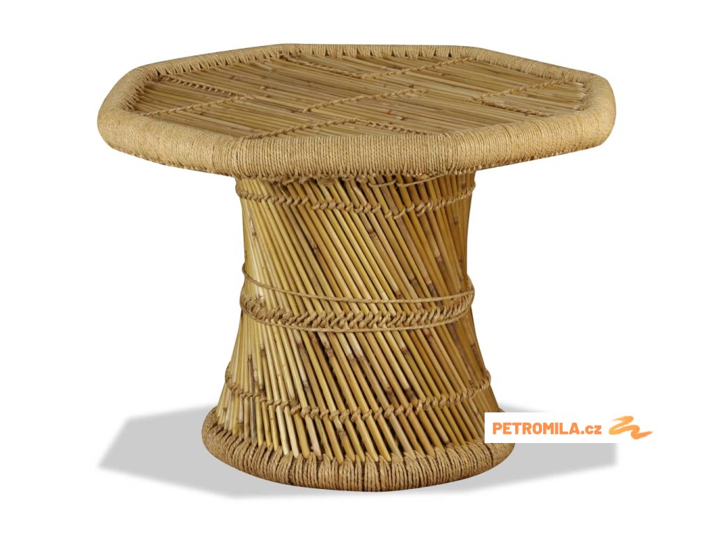 Tento konferenční stolek je ručně vyrobený z přírodního bambusu a juty, takže je robustní a odolný. Na jeho osmihrannou desku si můžete v klidu odložit knihy, notebooky, květináče atd. Navíc se také snadno čistí.