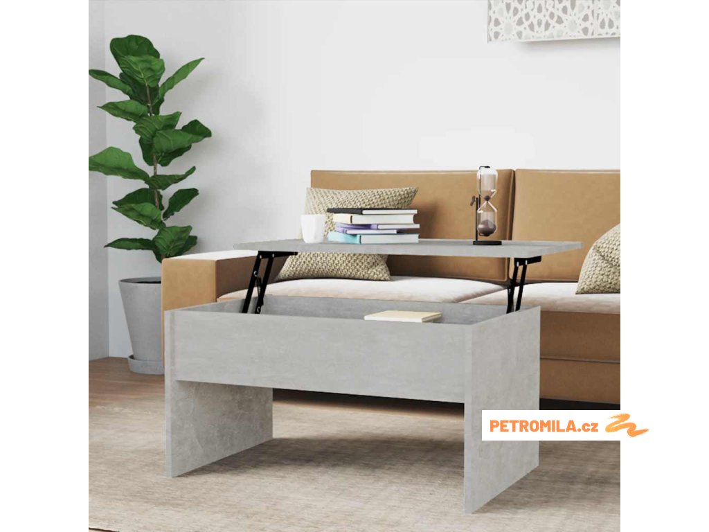 - Design se zvedací deskou: Stolní deska tohoto stolku k pohovce se dá hladce zvednout do pohodlné výšky, a tím jej přeměnit na místo, kde můžete pracovat nebo stolovat.