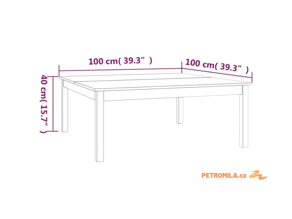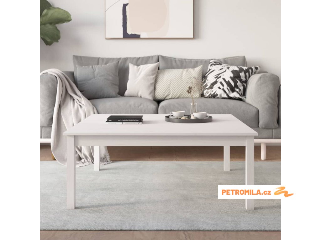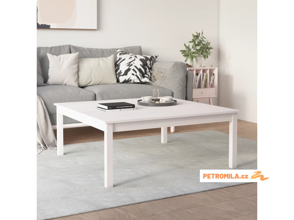 Konferenční stolek bílý 100 x 100 x 40 cm masivní borové dřevo